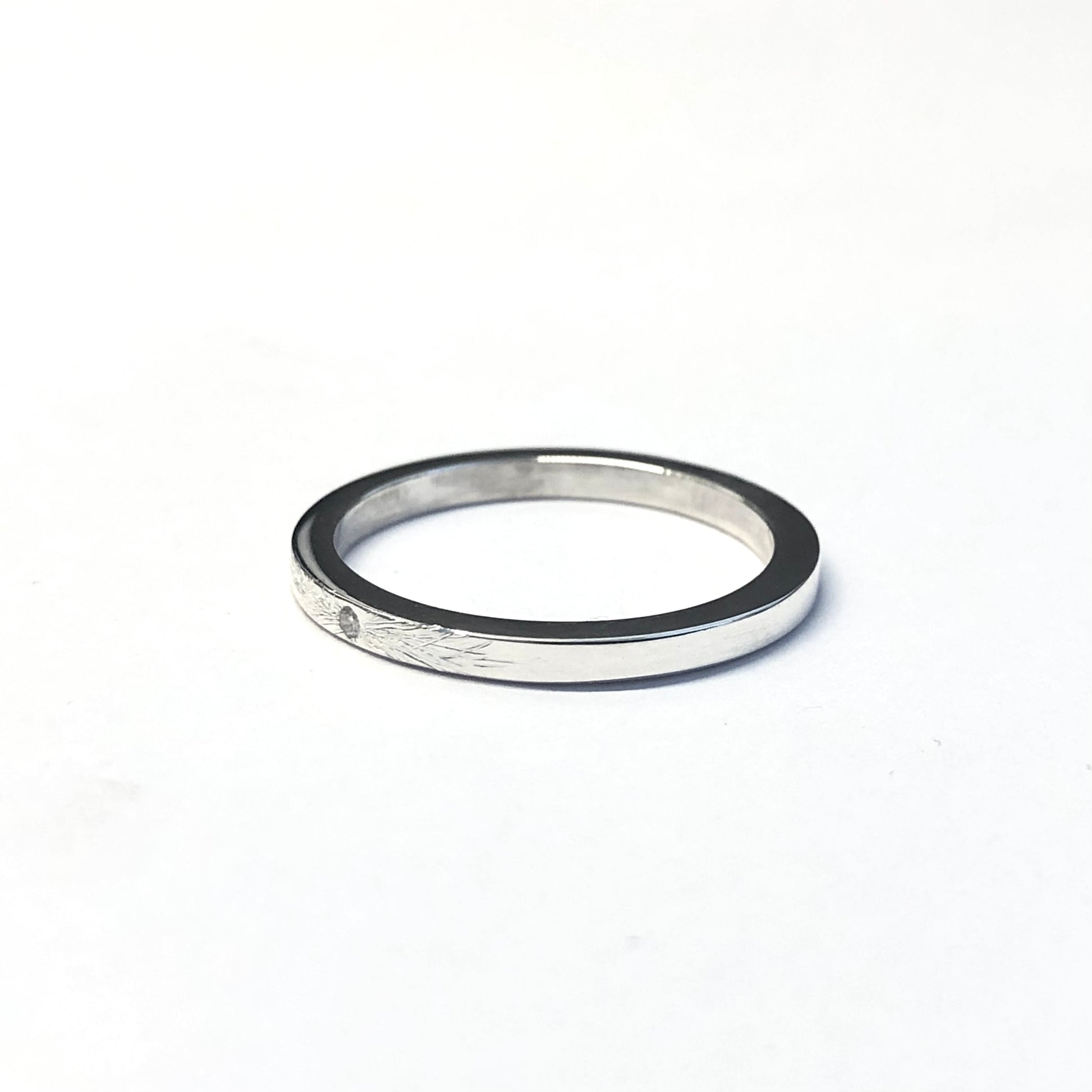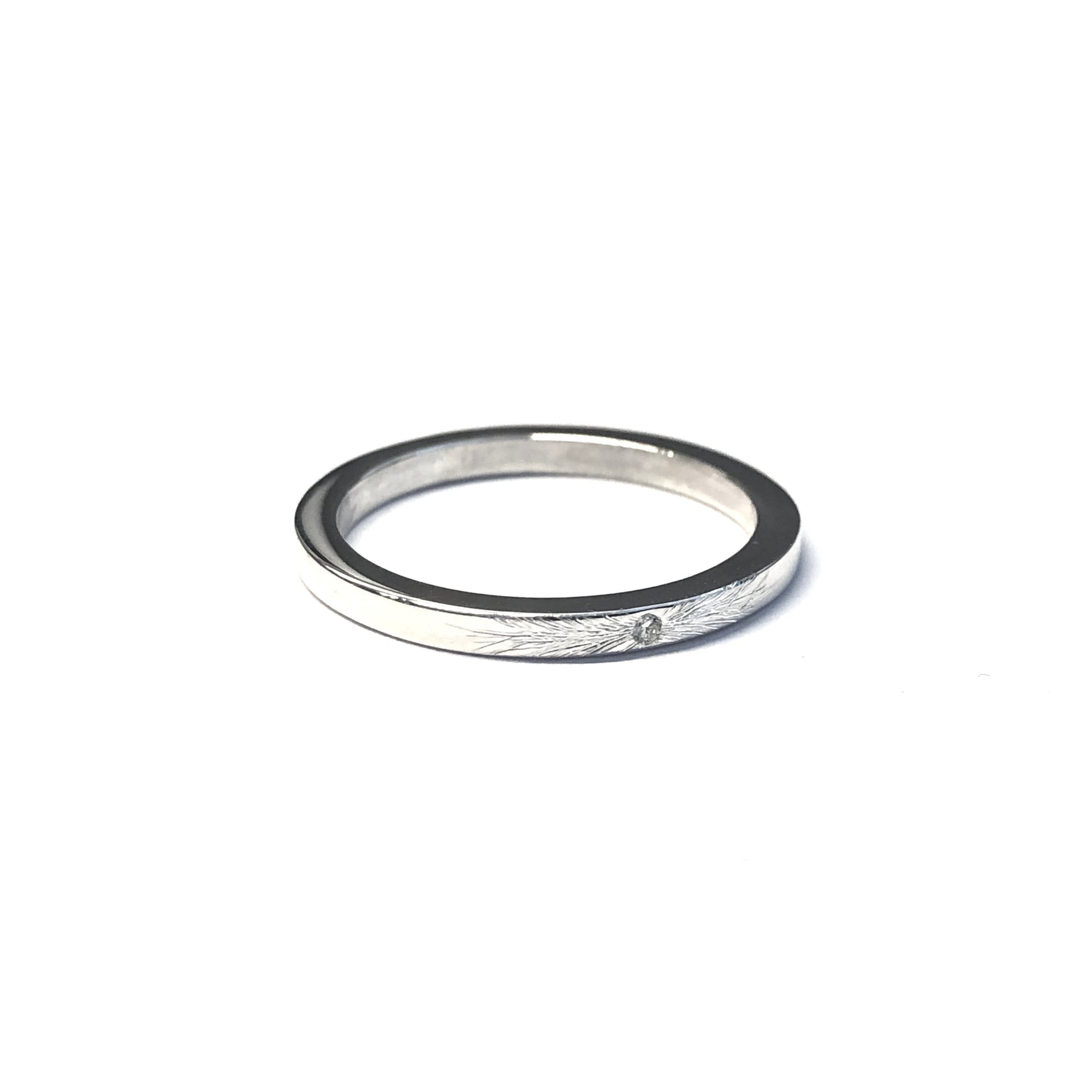 Un bijou d’une élégante simplicité : un diamant délicat (0,01 ct) scintille au sommet d’un anneau en argent 925 à section carrée.