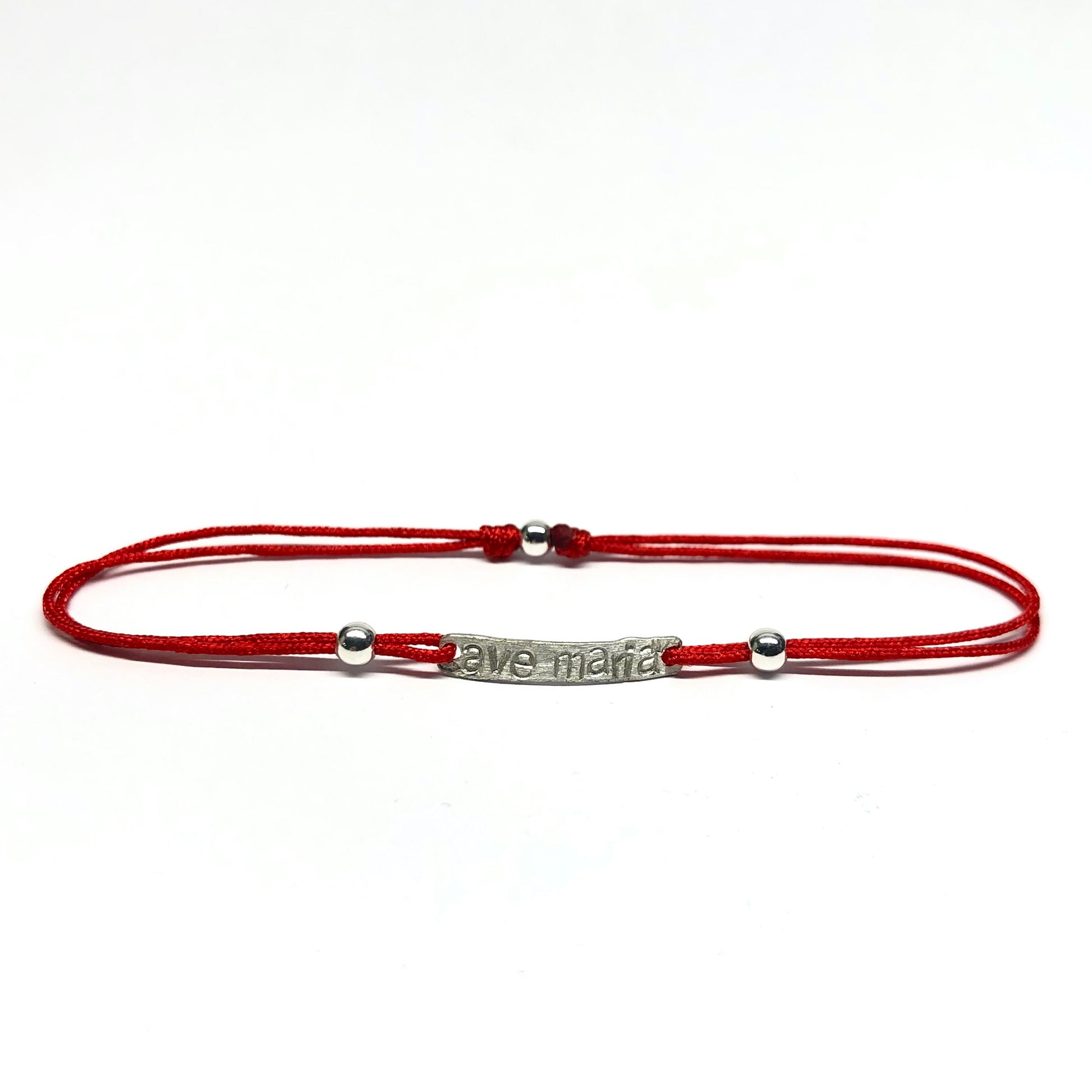 Inspiré de la chanson Ave Maria, prière chantée sur une composition de Shubert. Ce bracelet unique associe simplicité et émotion. La plaque en argent 925 est frappée à la main des mots qui composent le titre, rendant chaque pièce singulière et profondément personnelle.