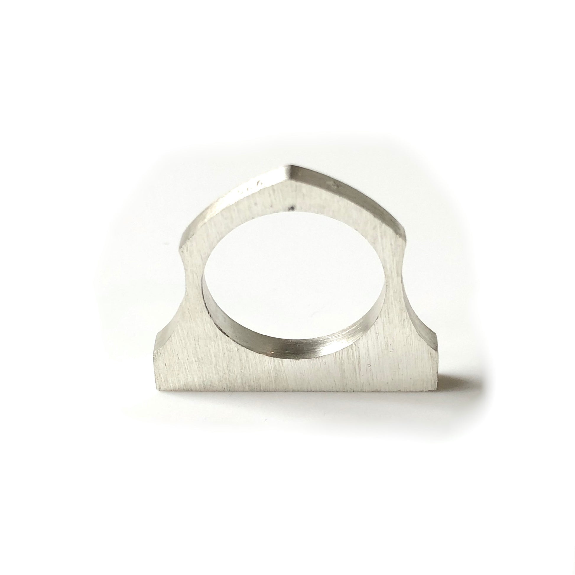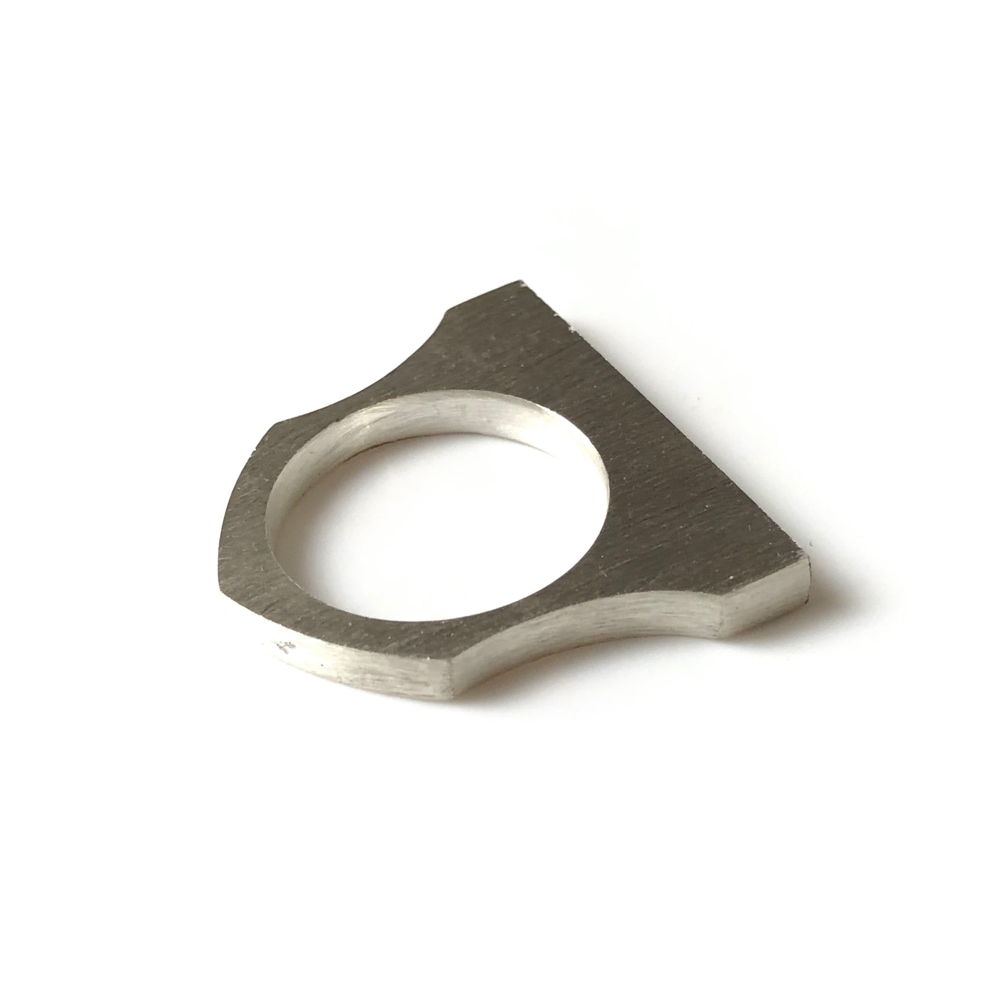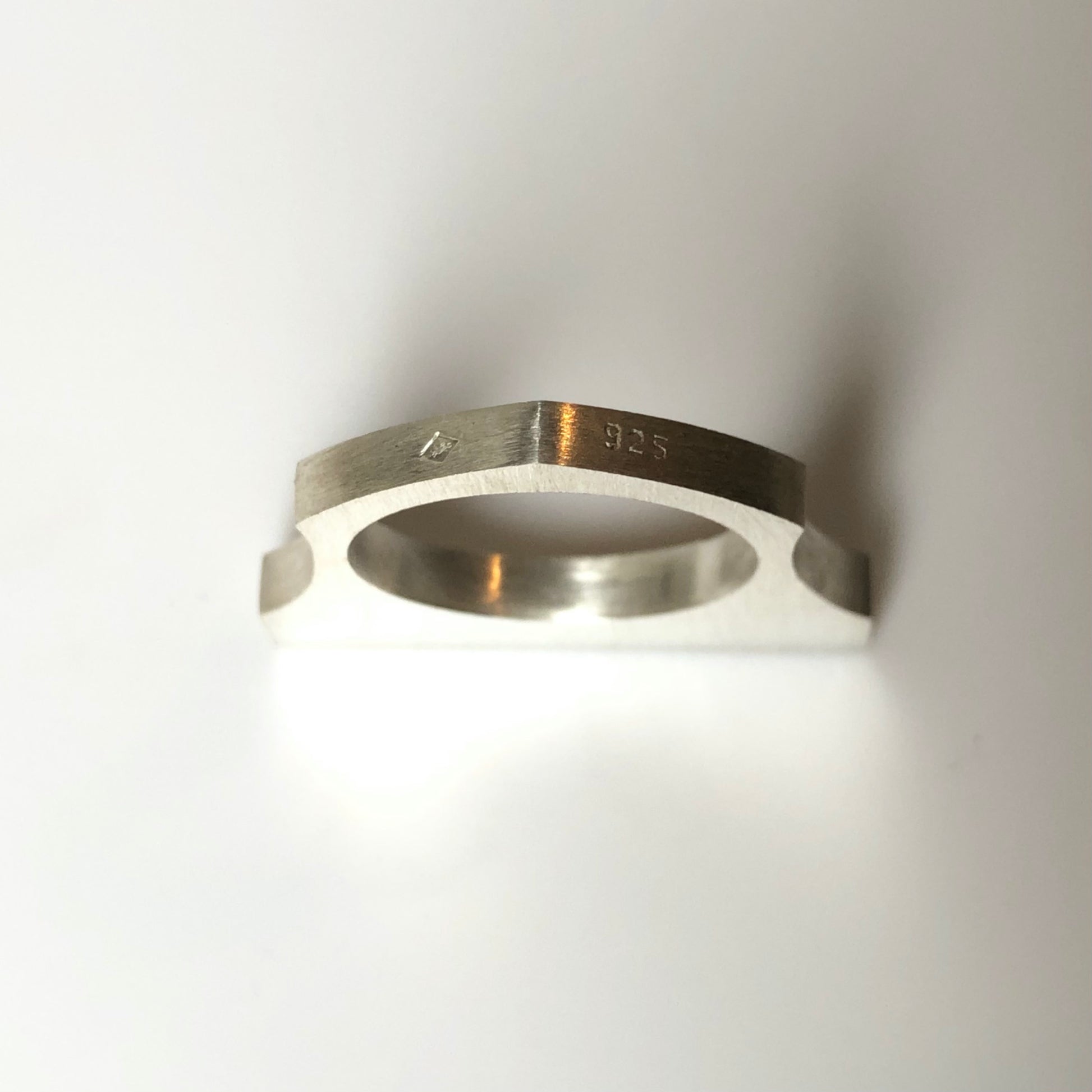 Cette bague audacieuse en argent massif séduit par son design singulier et sa personnalité affirmée.