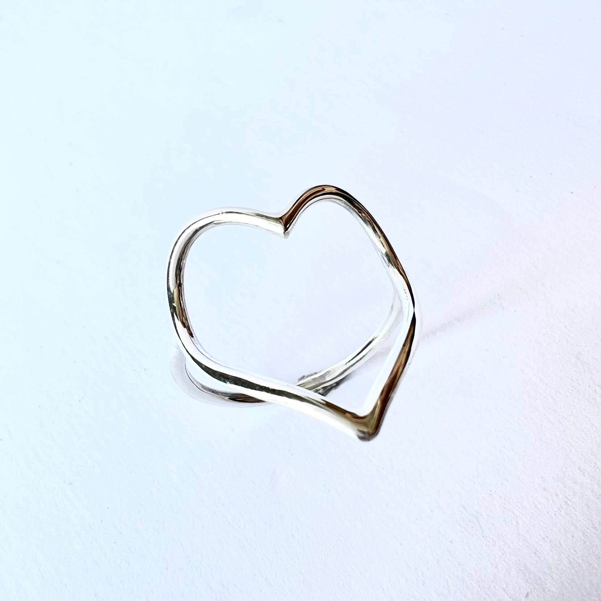 Une bague tout en délicatesse, formée d’un fil d’argent 925 façonné à la main pour dessiner un cœur simple et pur.