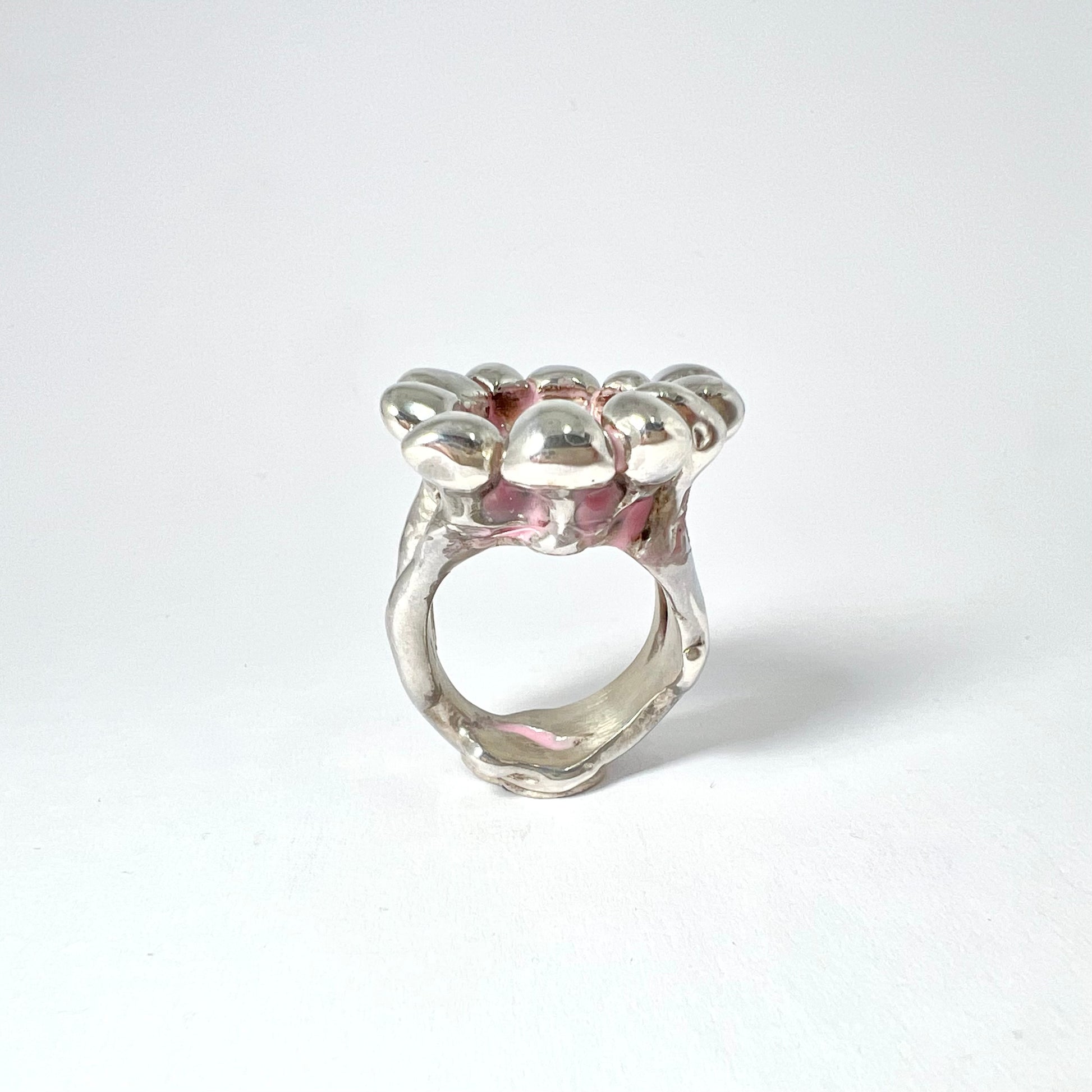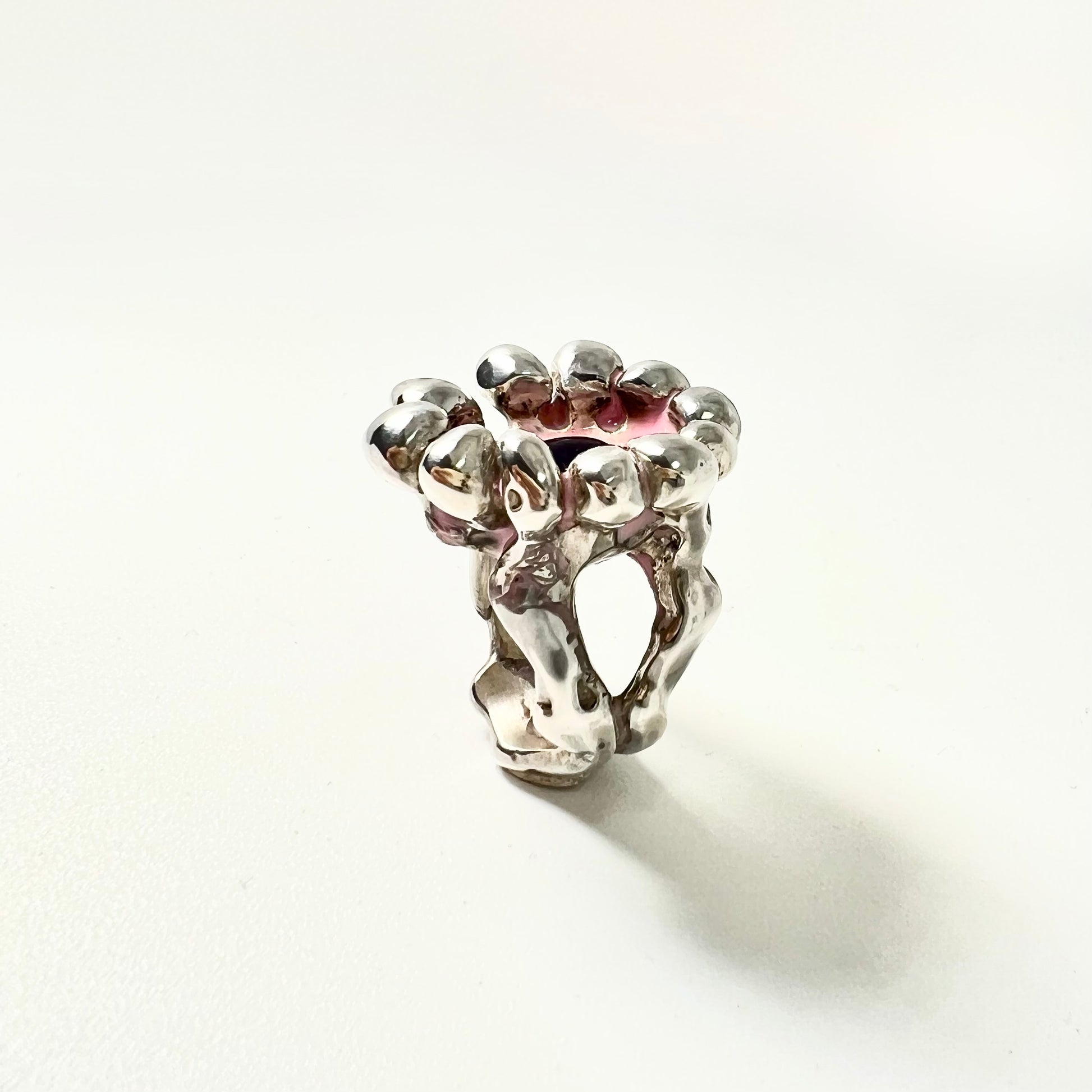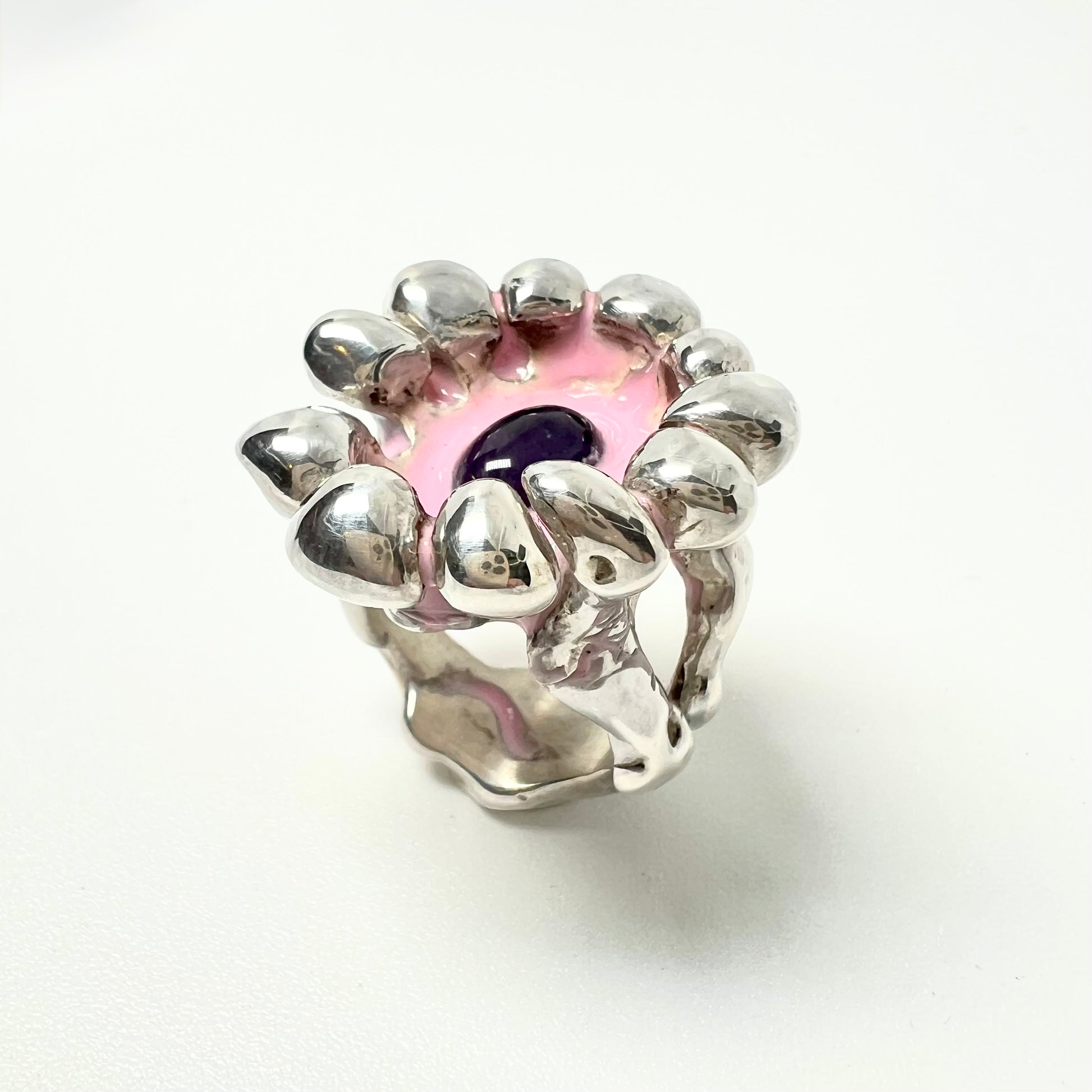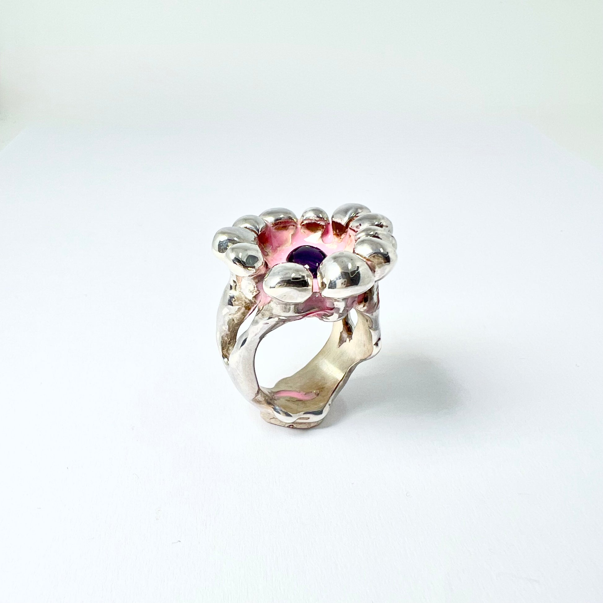 Bague en argent, améthyste & résine rose
