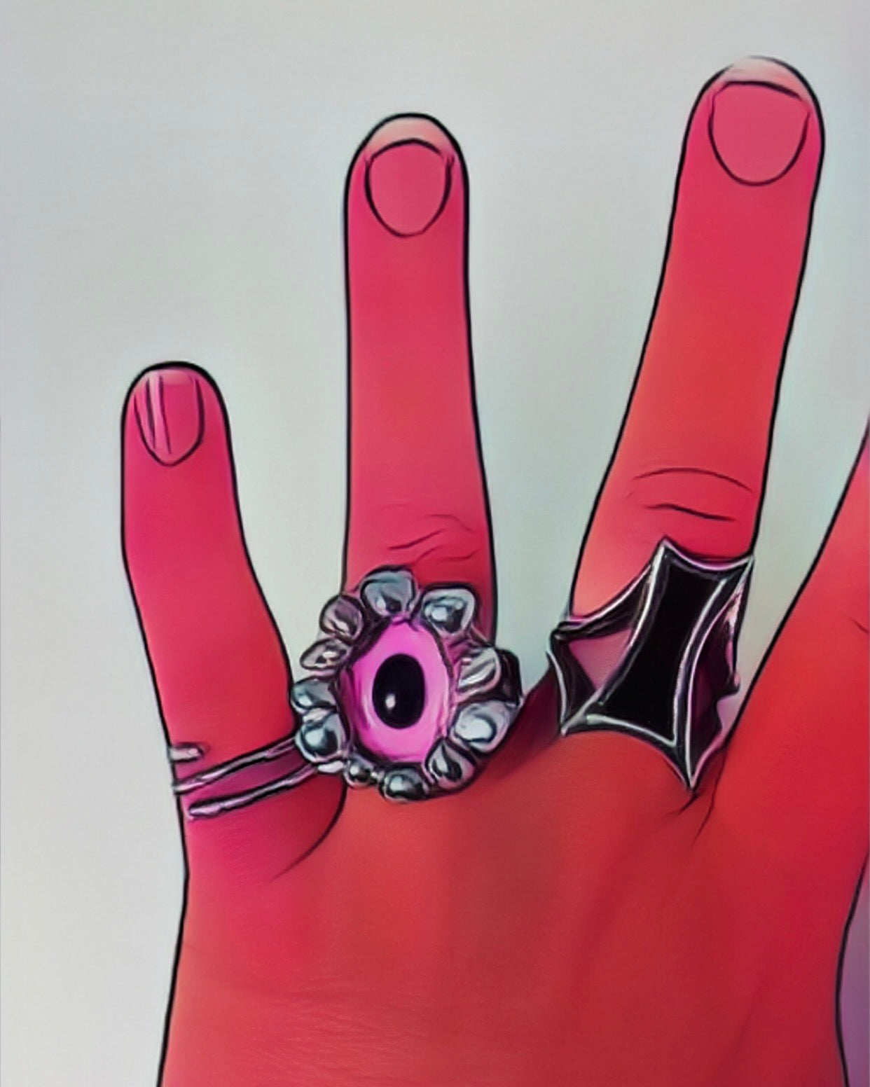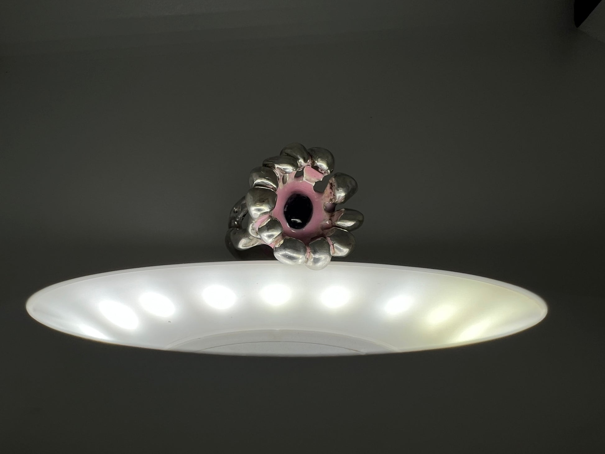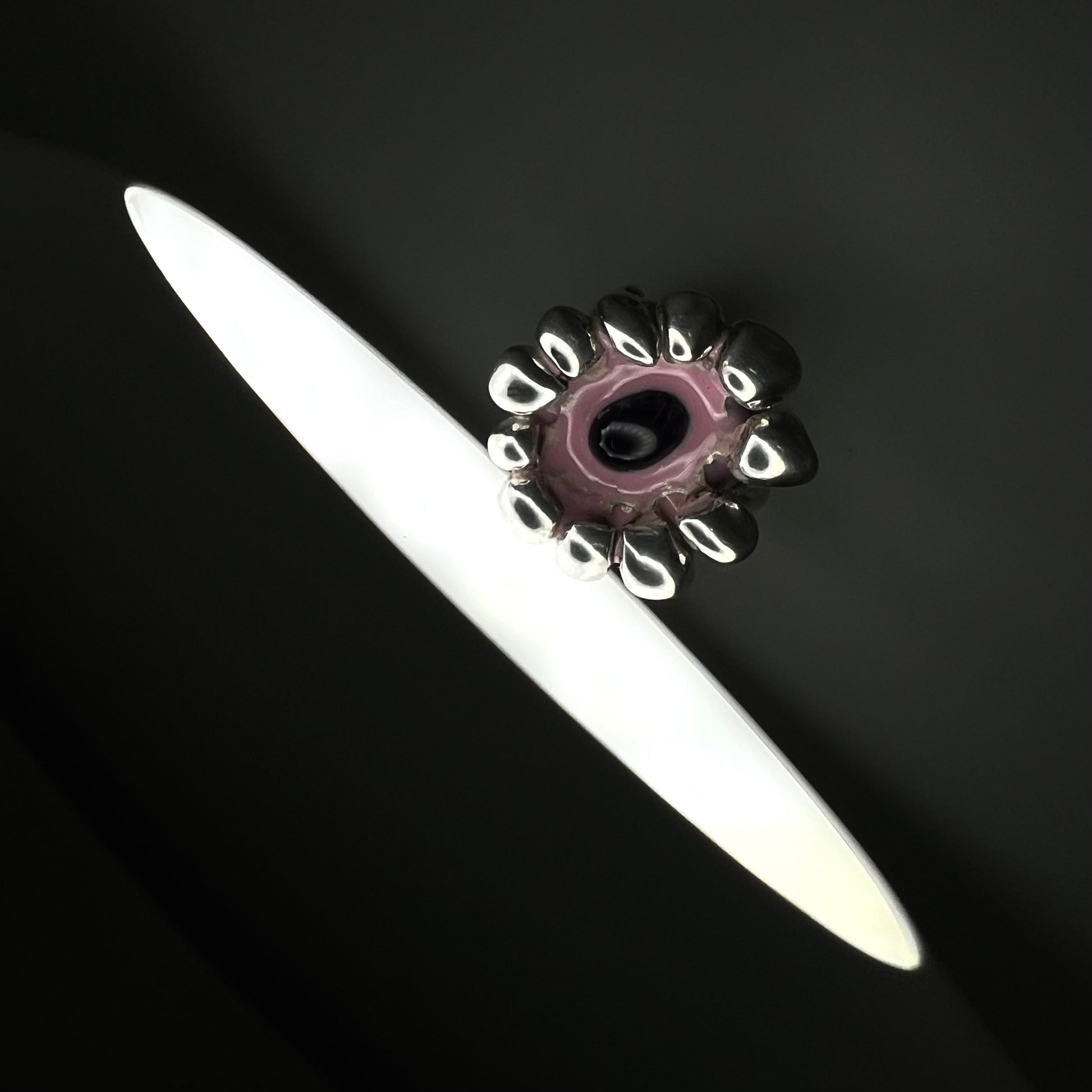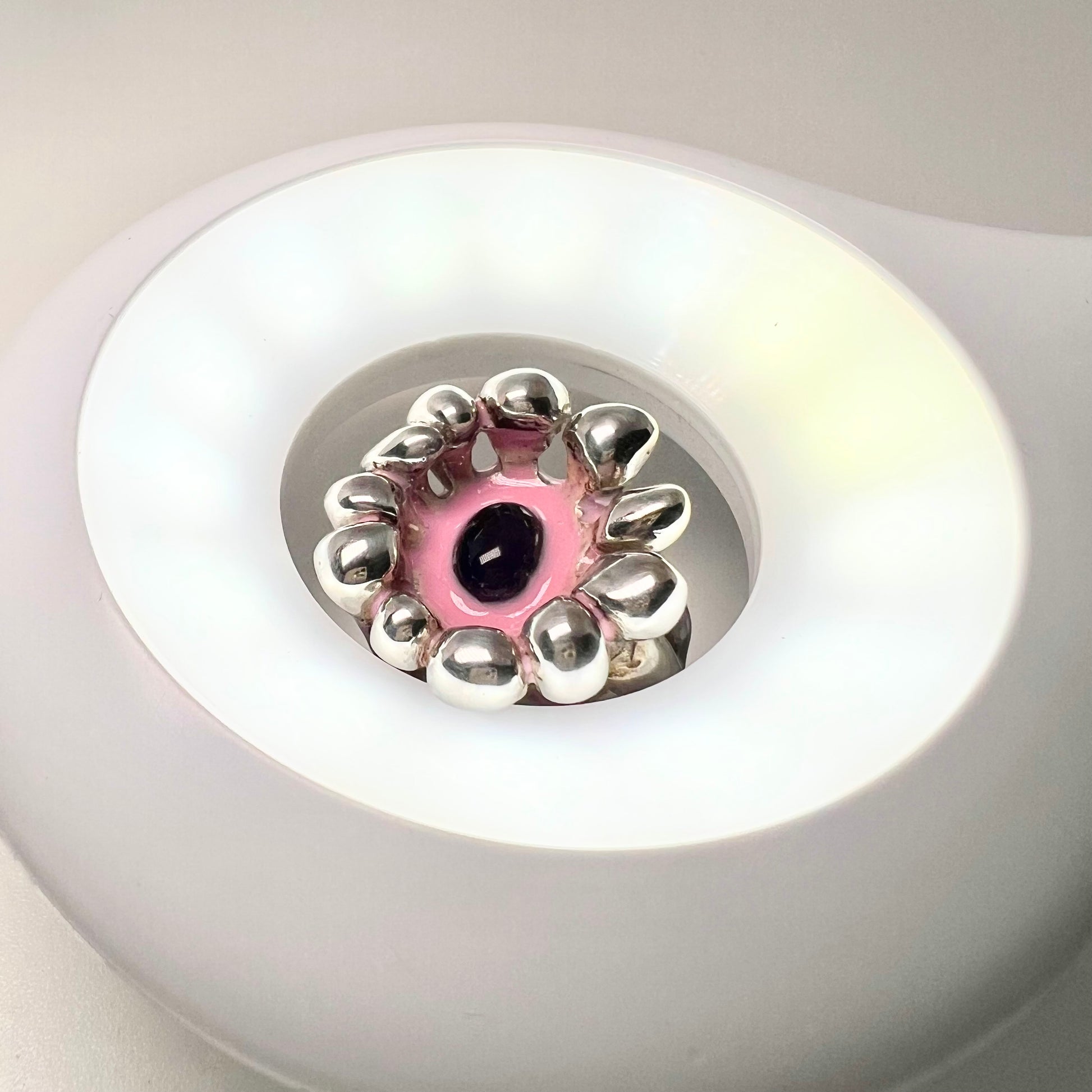 Bague en argent, améthyste & résine rose