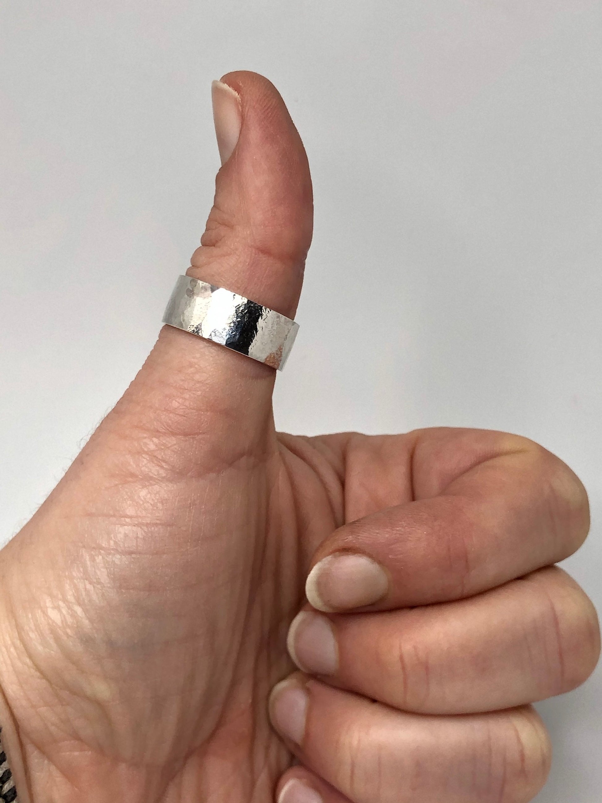 Anneau en argent massif 925, à la surface martelée à la main et à l’intérieur finement brossé pour un confort optimal.
