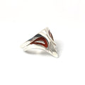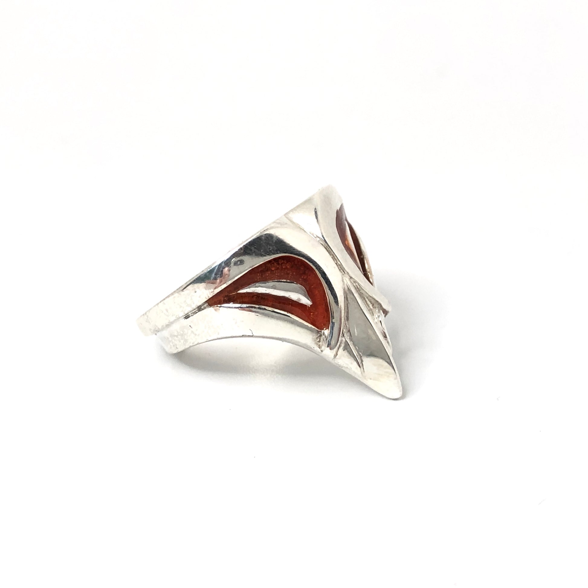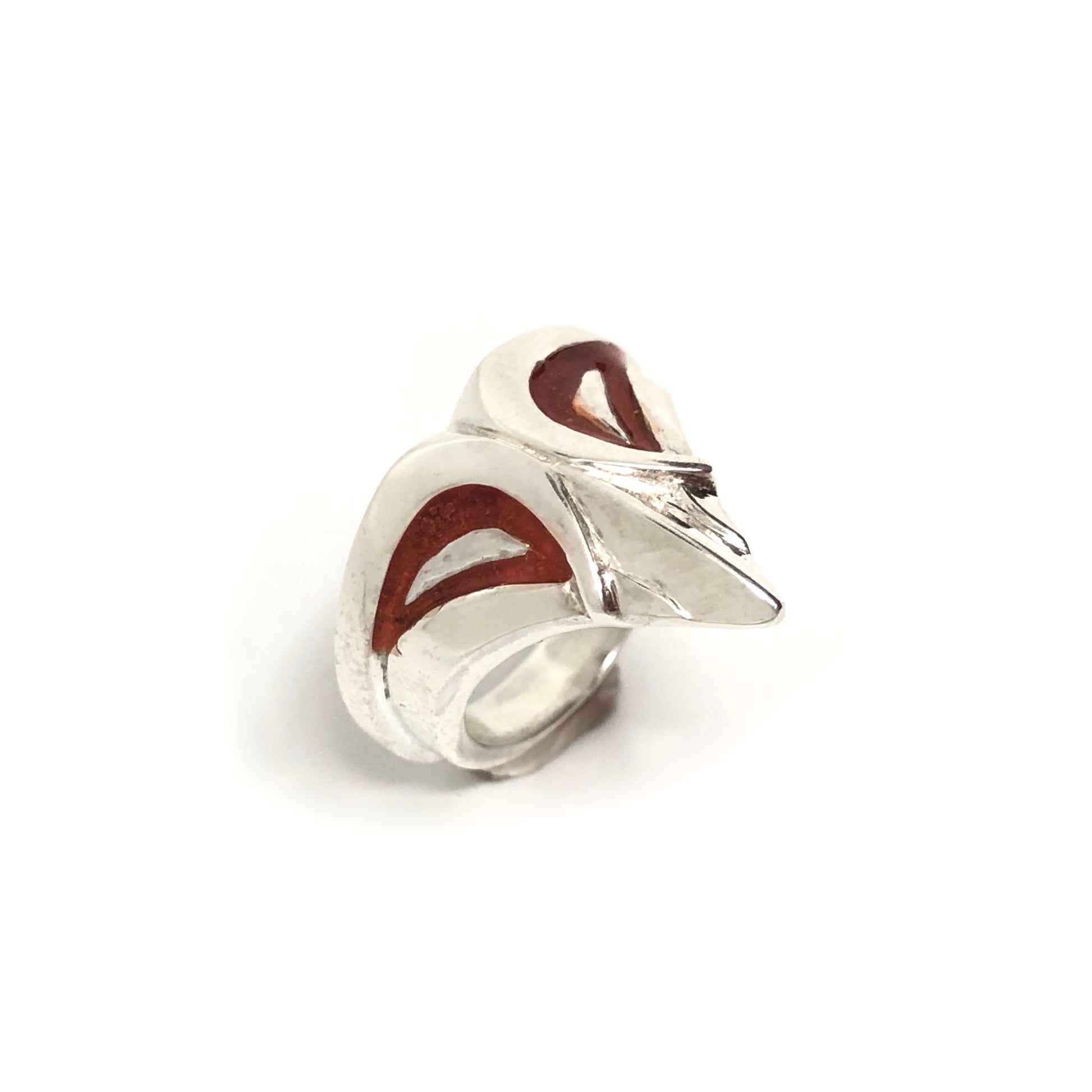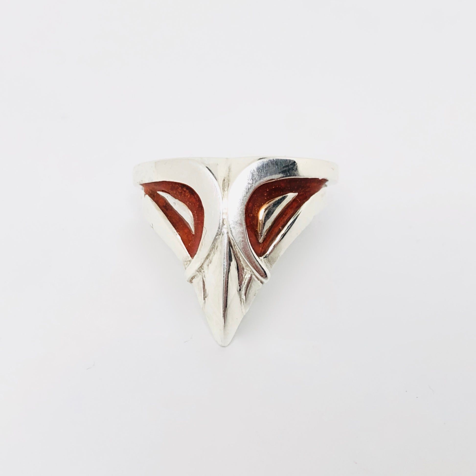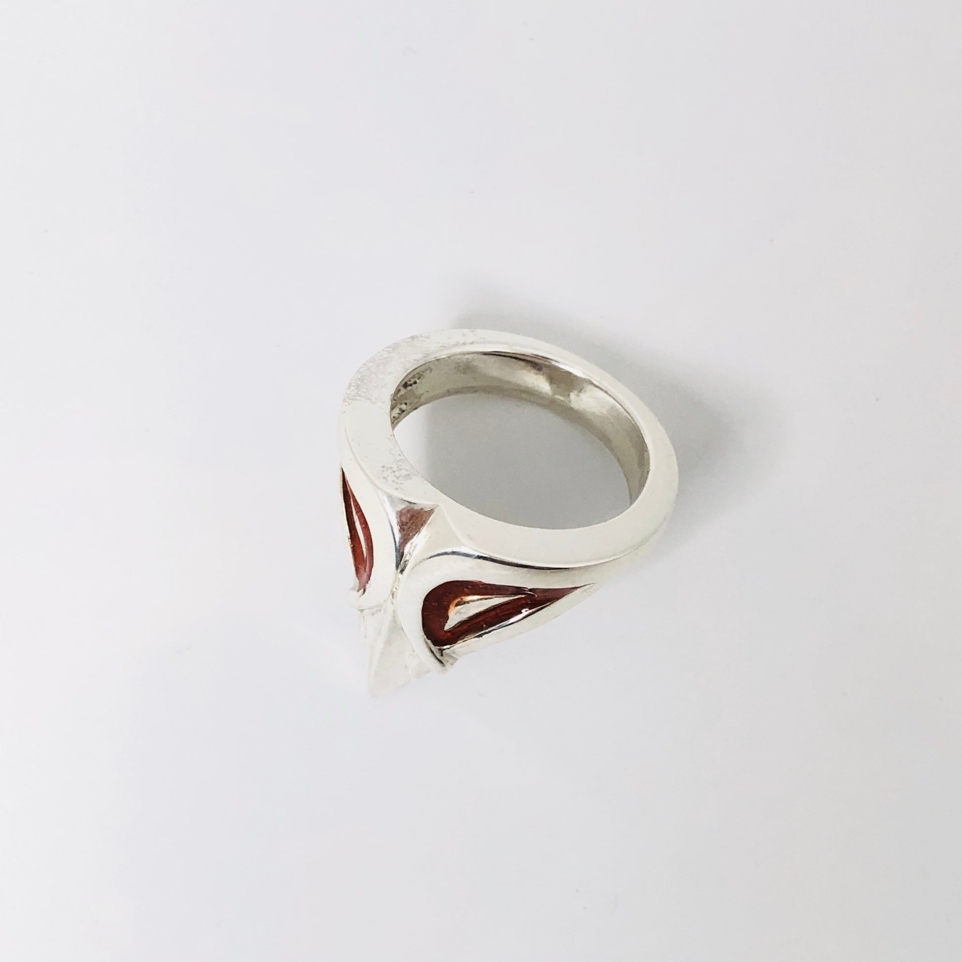 Apportez une touche originale à votre look avec cette bague masque en argent massif, ornée d’un contour des yeux en émail à froid rouge