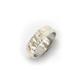 Alliance contemporaine de matières et de textures, la bague Rocheuse marie la force de l’argent massif 925 à la chaleur de l’or jaune 750.