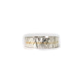 Pièce au design sobre et symbolique, elle peut être choisie comme alliance singulière, ou portée comme bijou de caractère au quotidien.