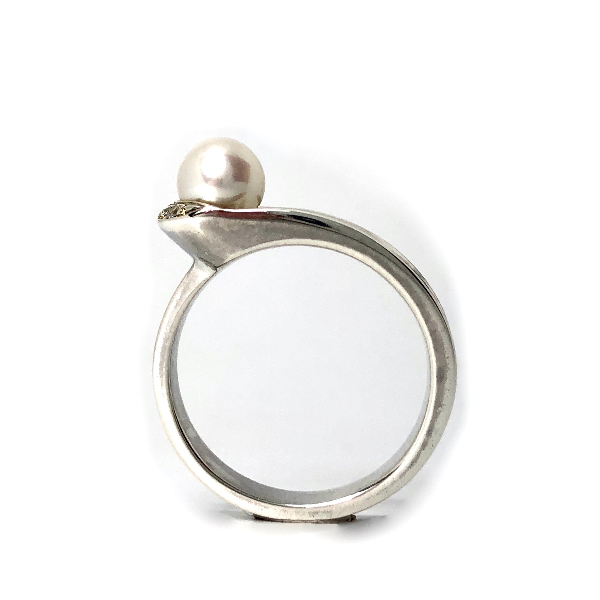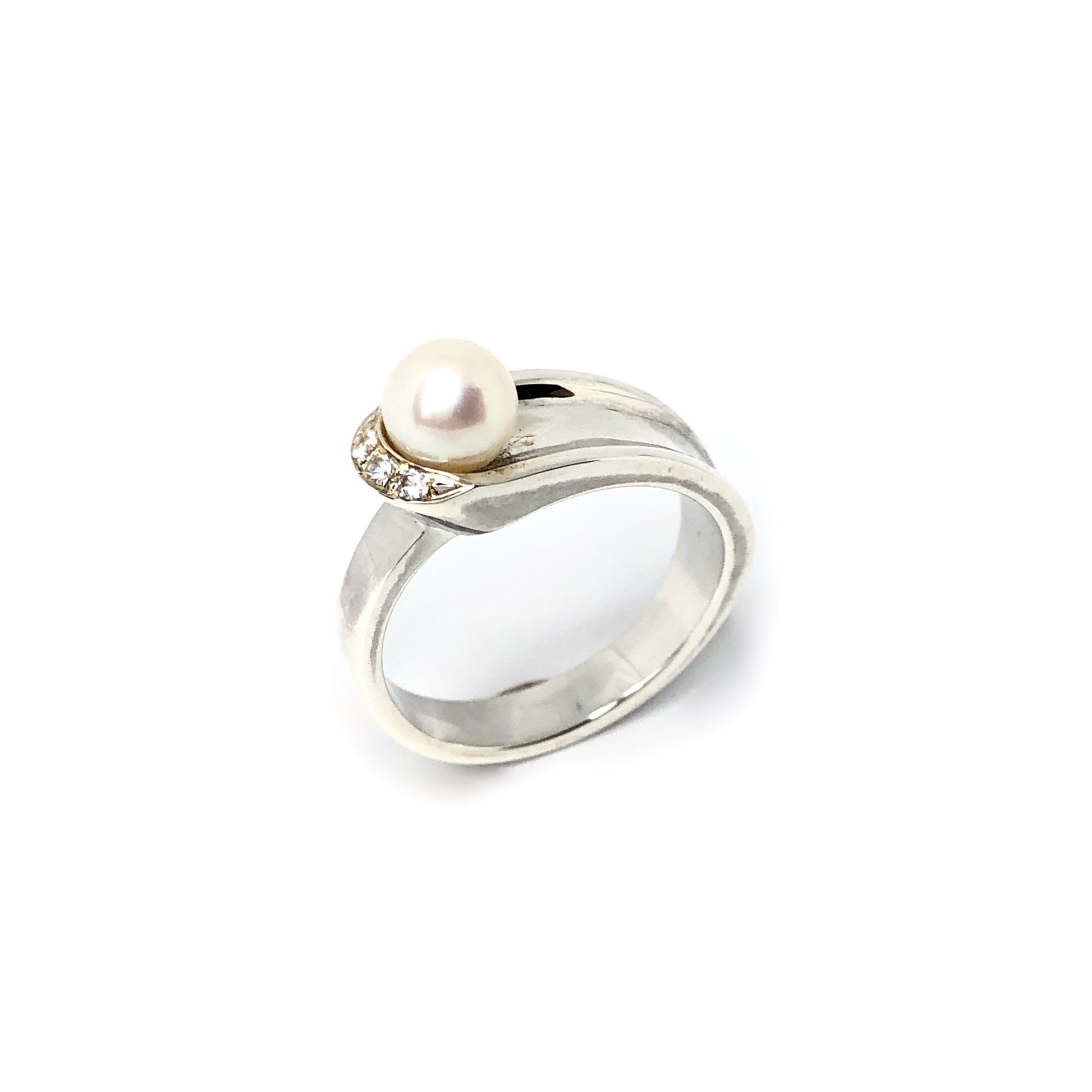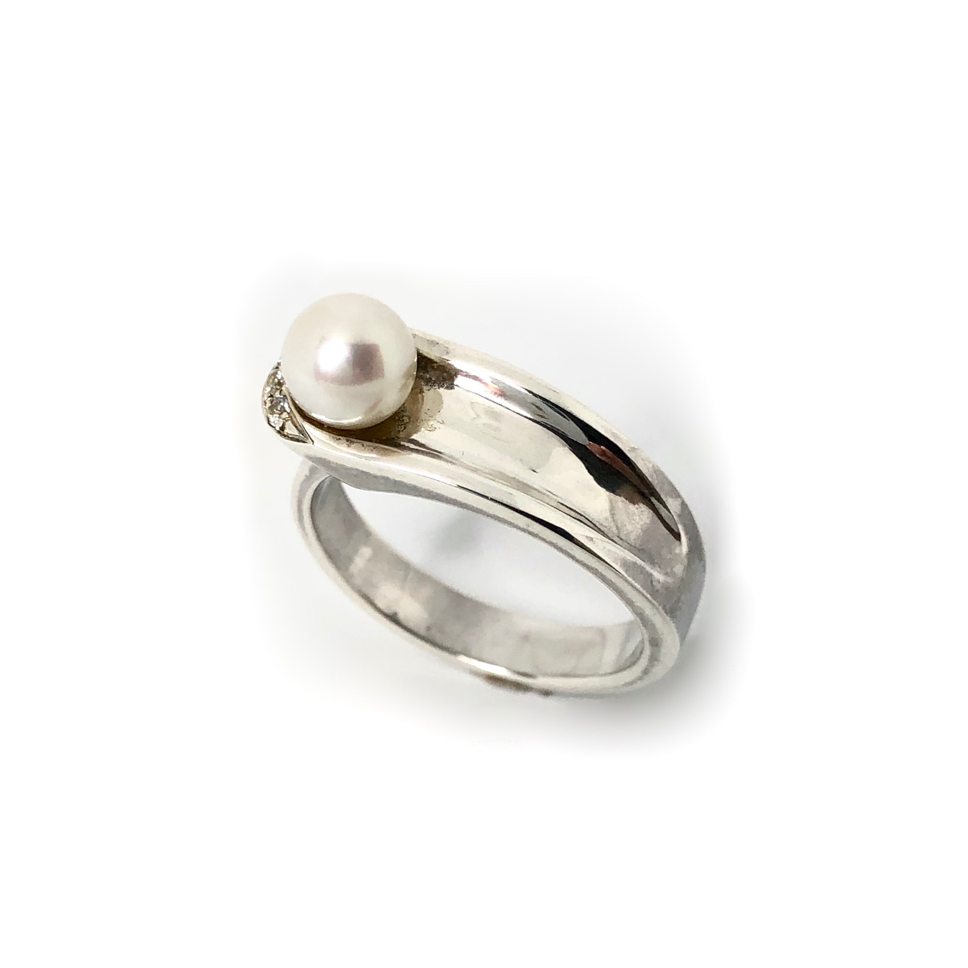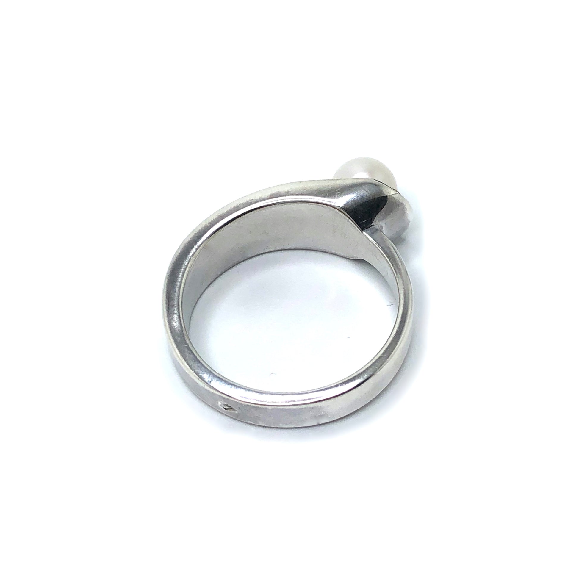 Cette bague en argent massif 925, au design fluide et élégant, évoque la douceur d’un toboggan où glisse une perle de culture naturelle.