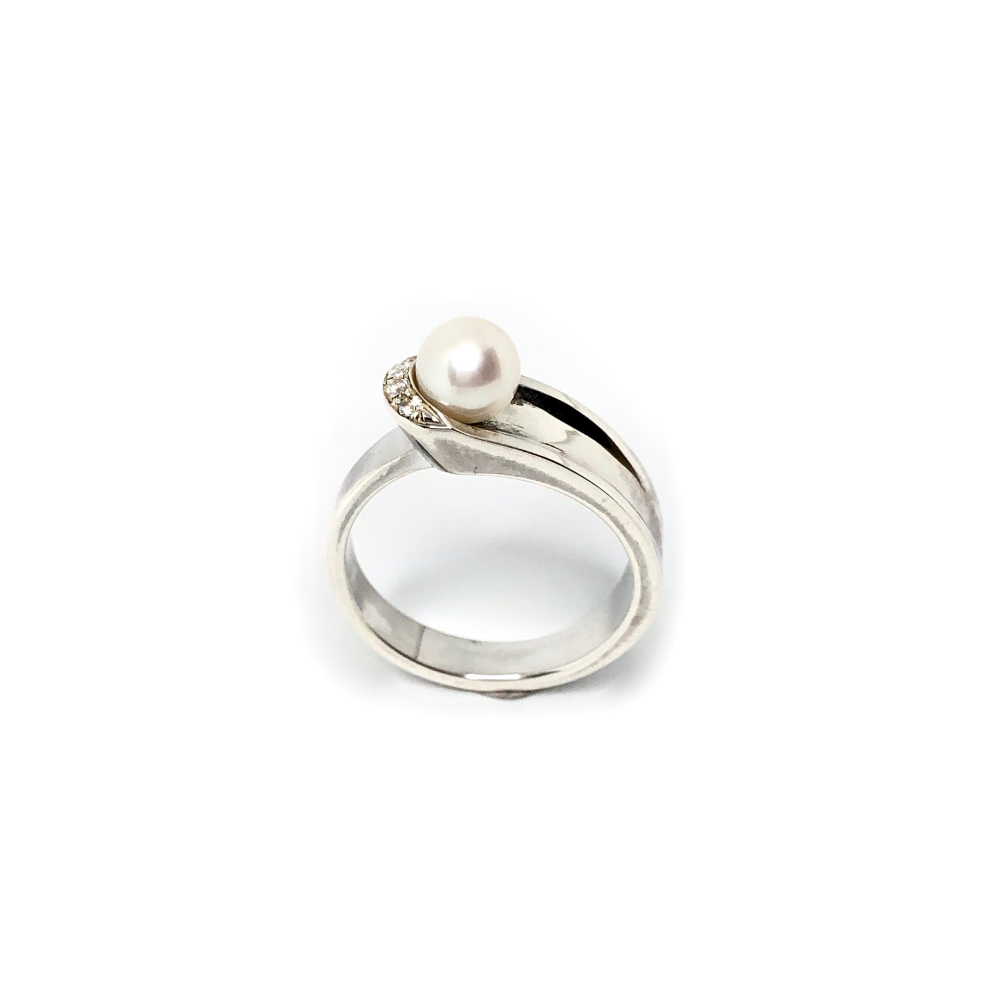 Bague “Tobogan” – Argent 925, perle de culture et oxydes sertis