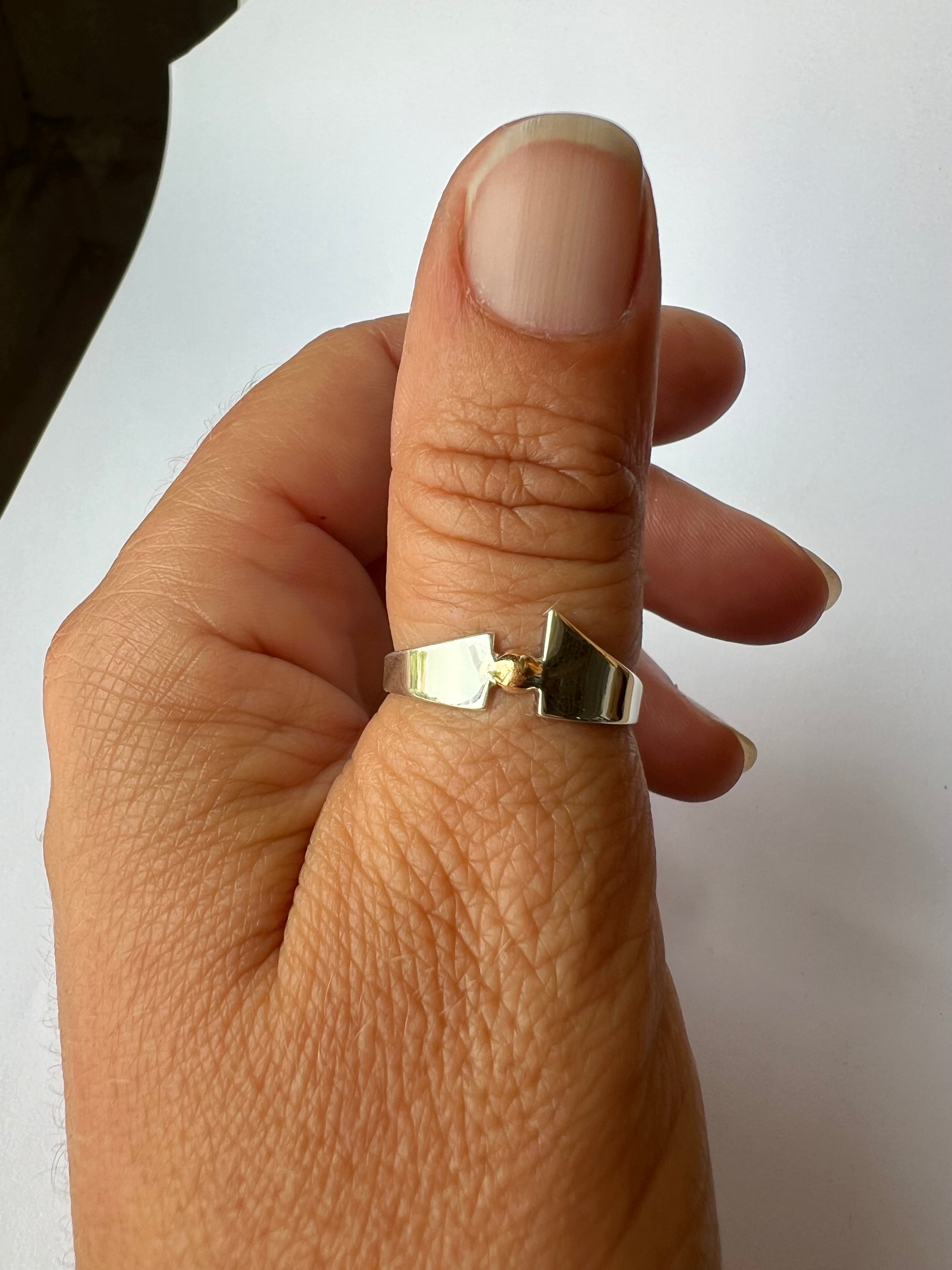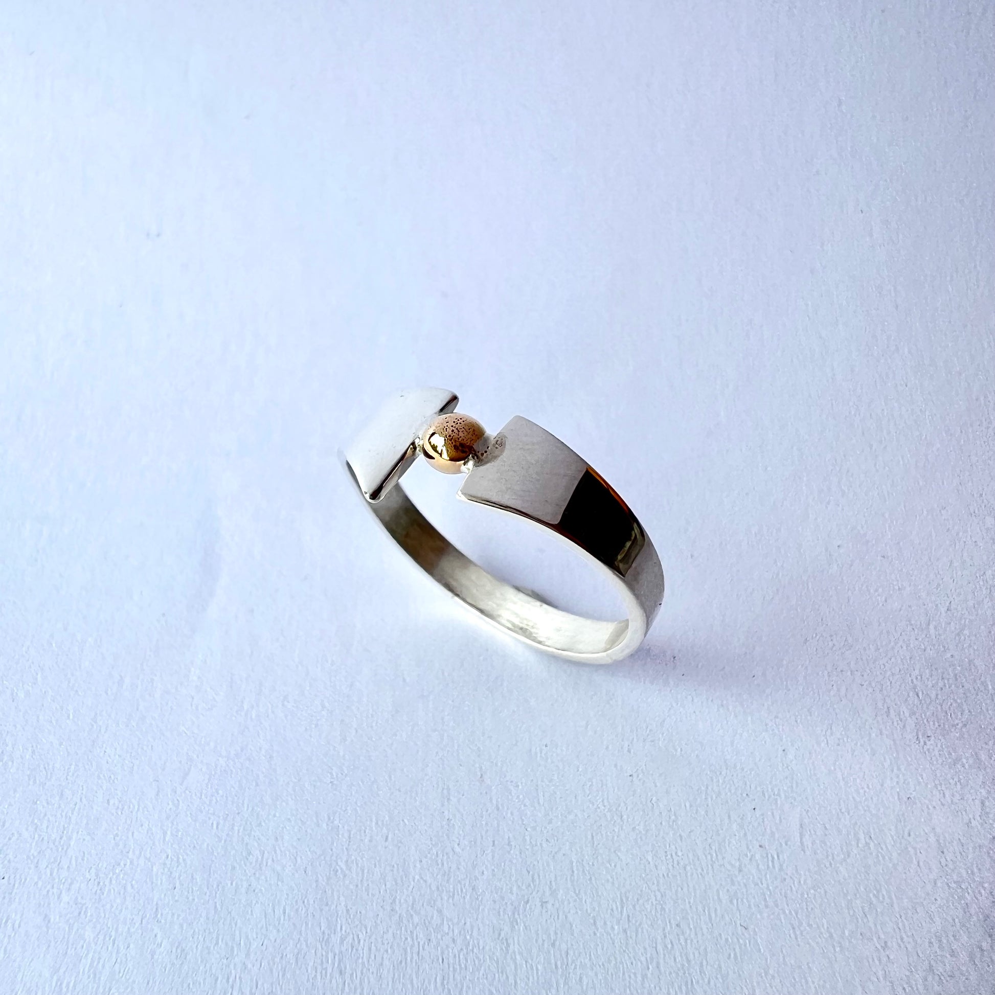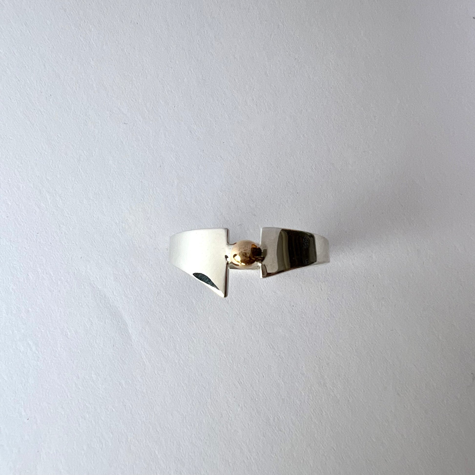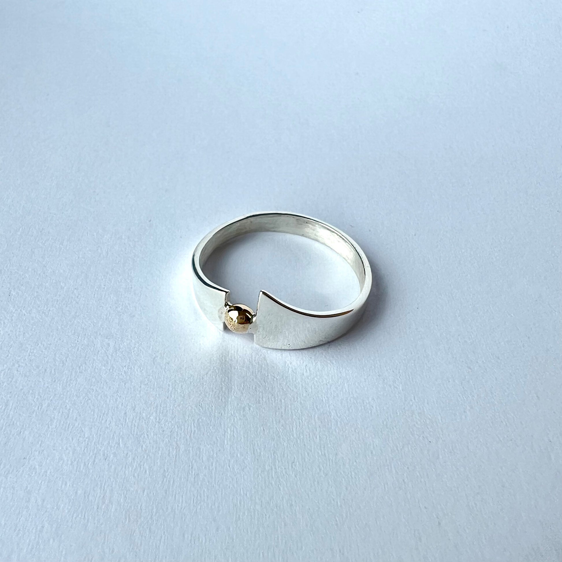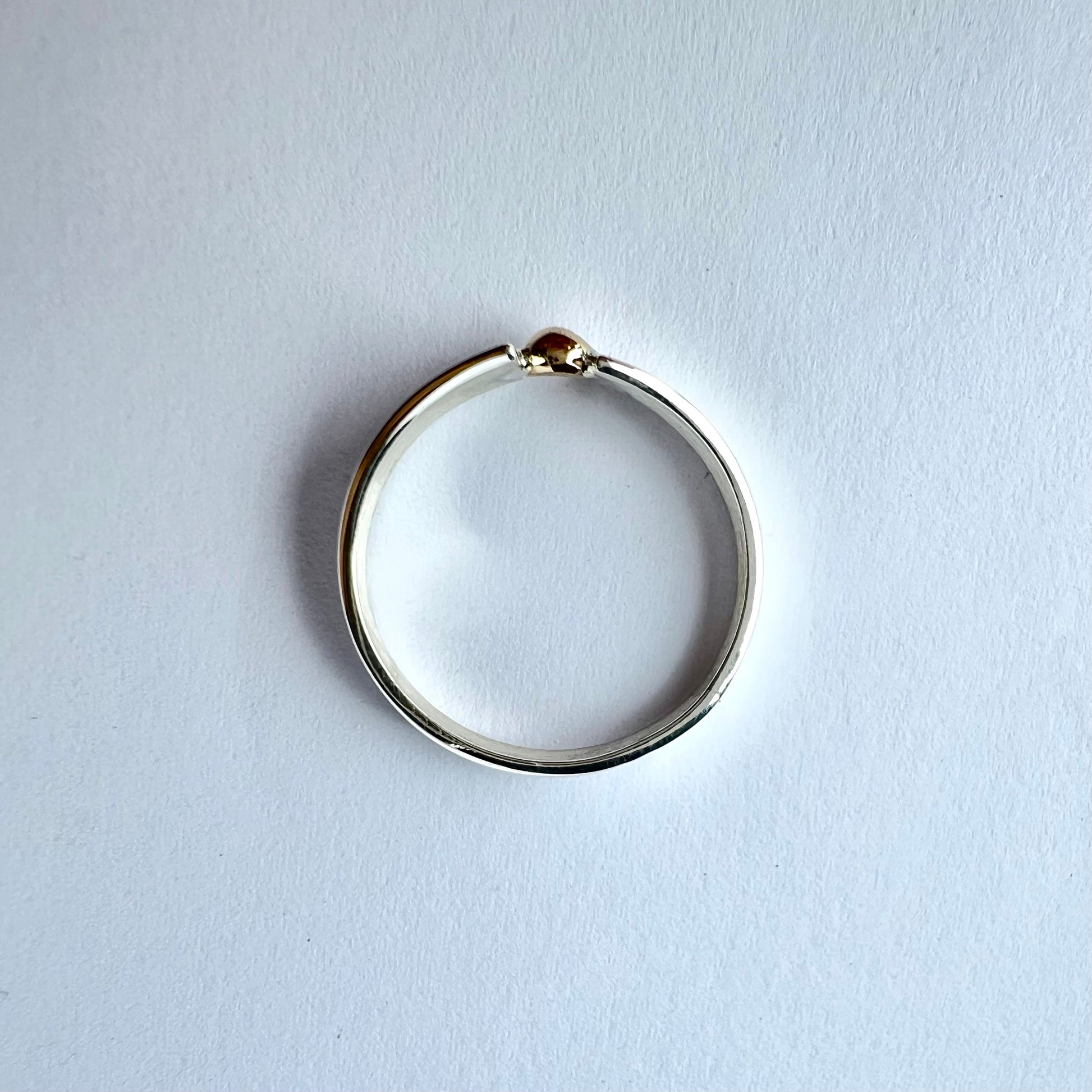 Cette bague unique allie argent massif recyclé et boule centrale en or, dans une démarche éthique et responsable.