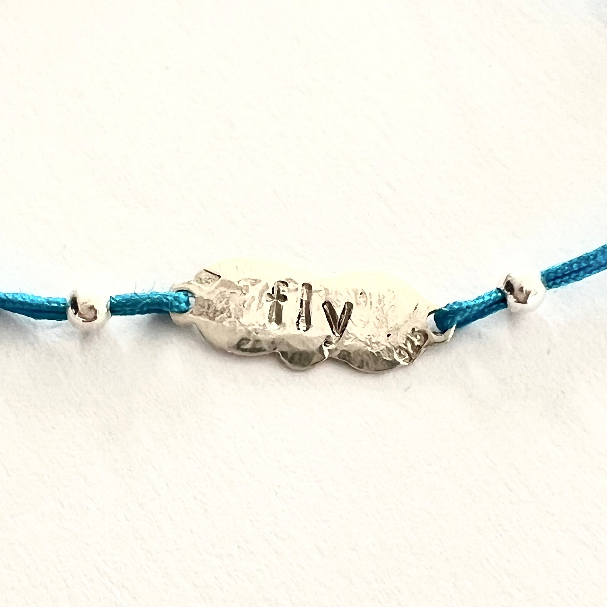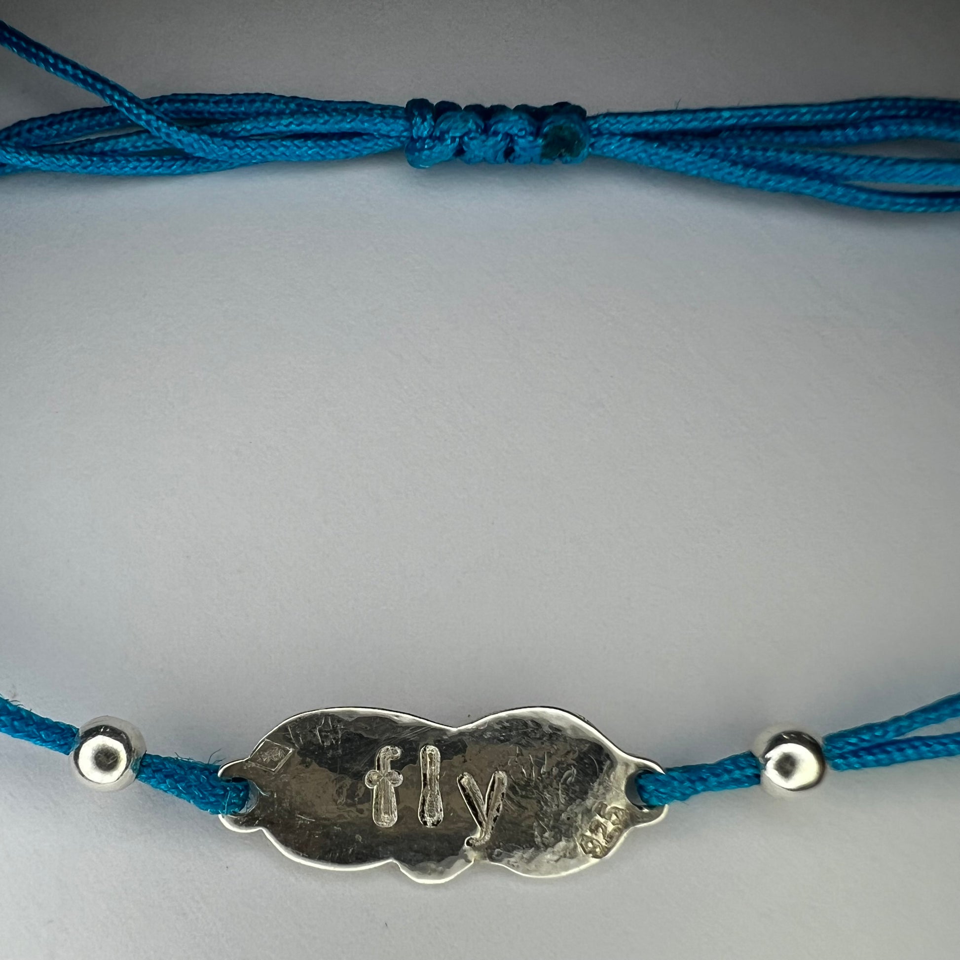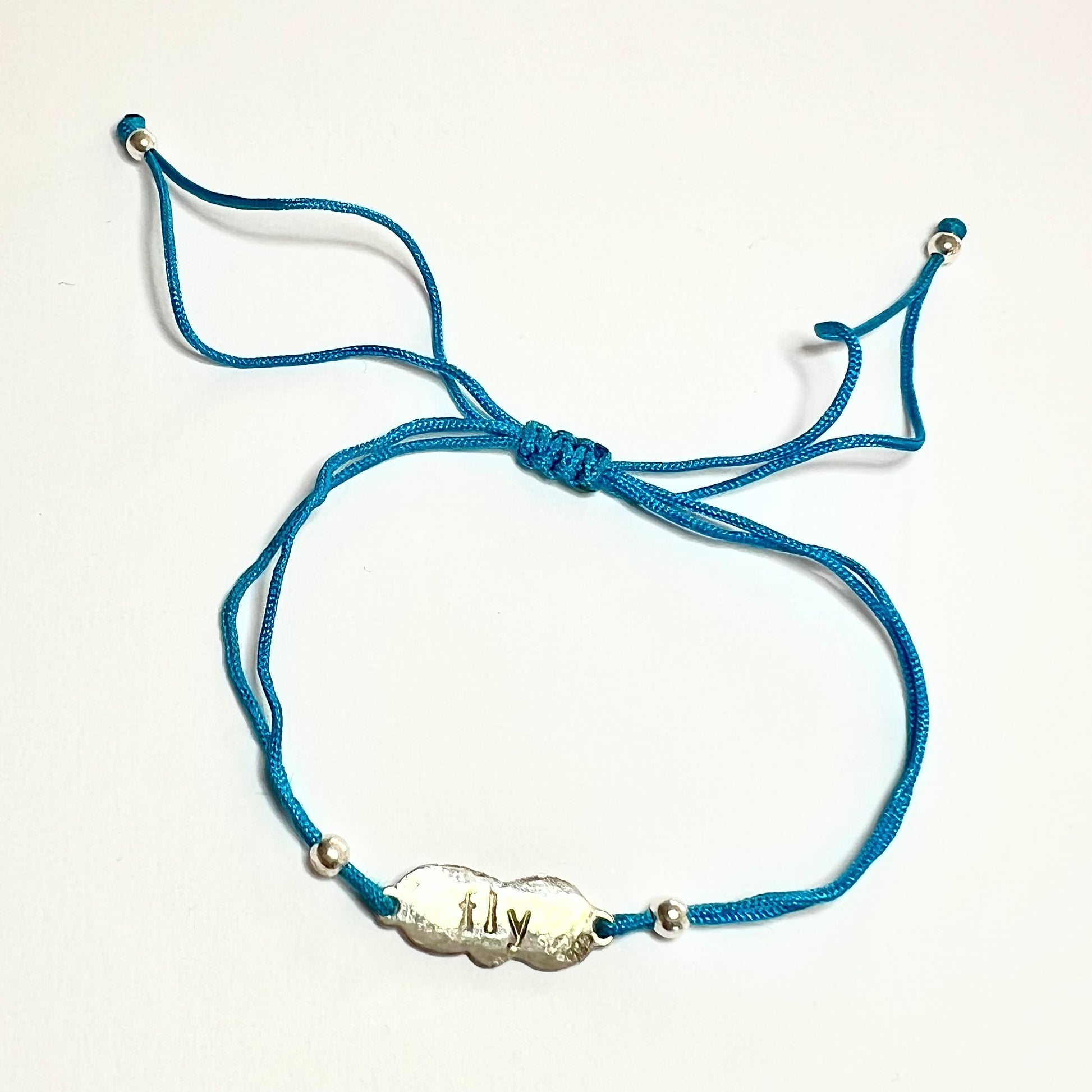 Monté sur un cordon en nylon bleu résistant et ajustable, ce bracelet s’adapte facilement à tous les poignets. Minimaliste et plein de sens, il se porte au quotidien comme un talisman personnel.
