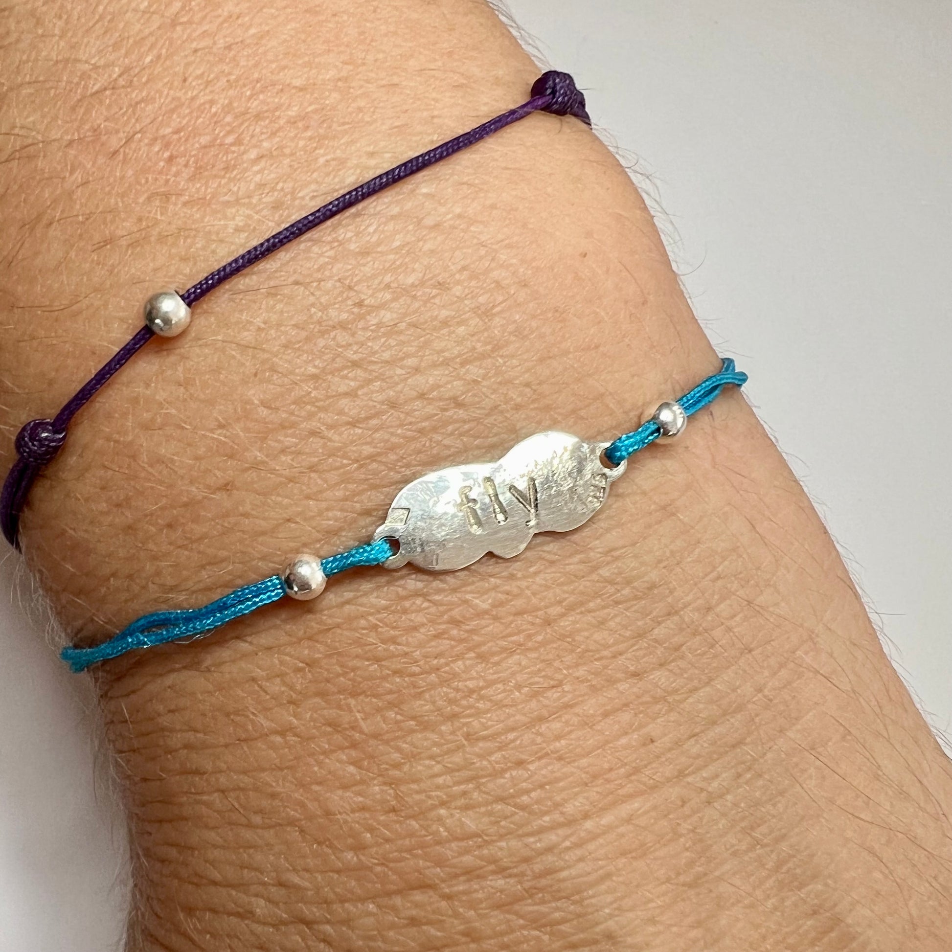Bracelet Nuage "Fly" en argent 925 sur cordon bleu