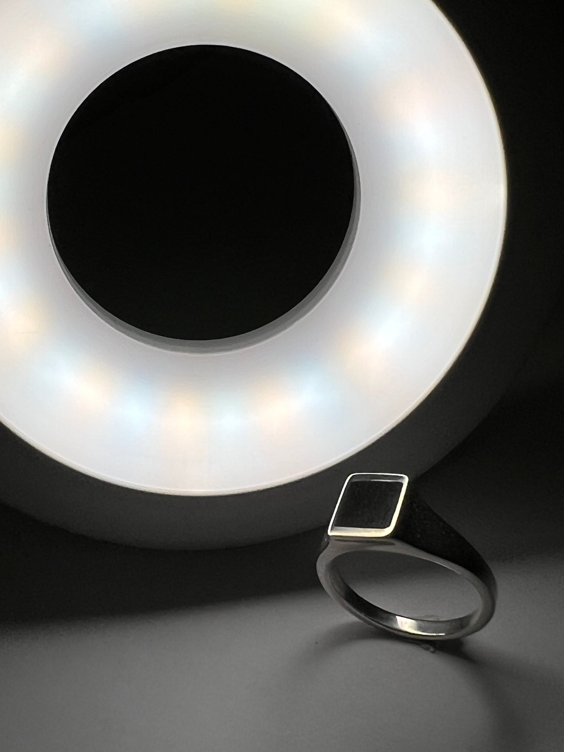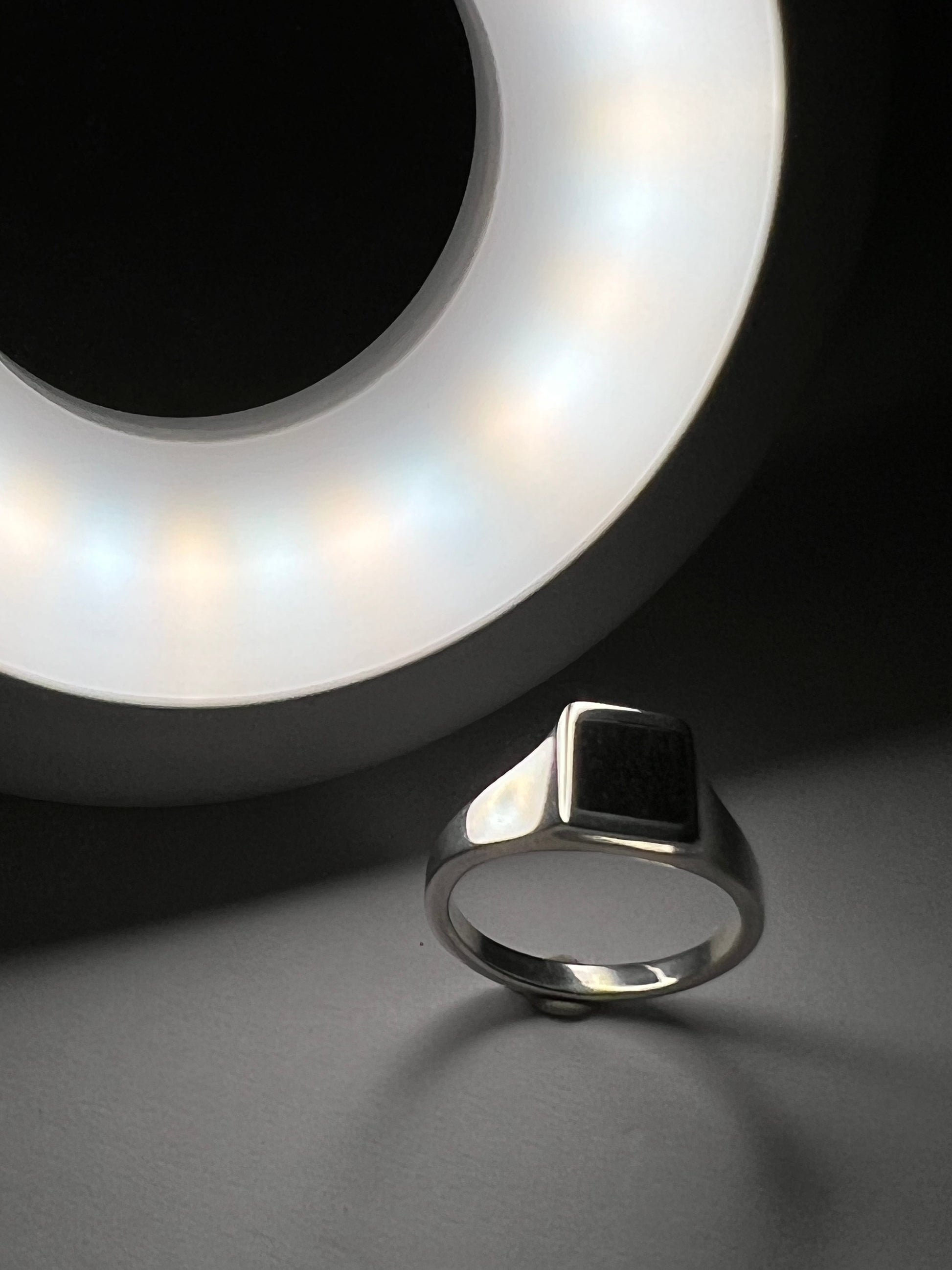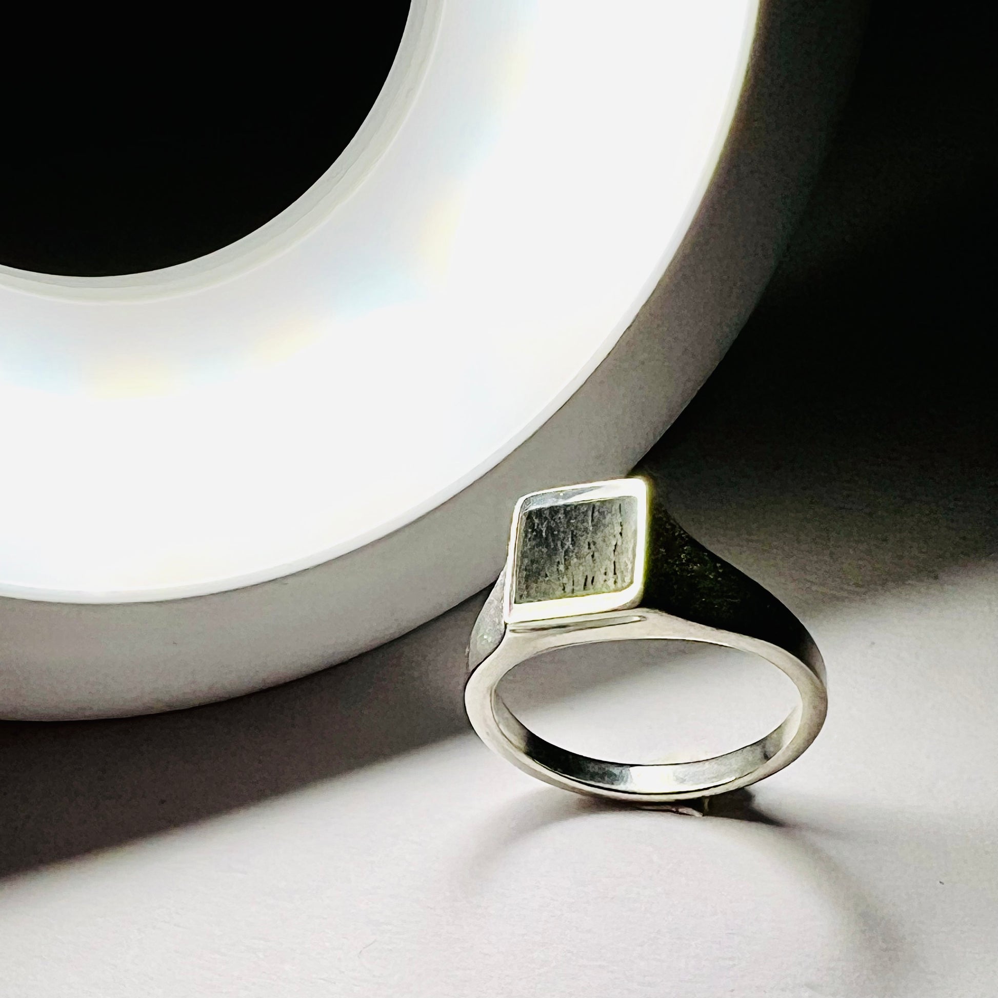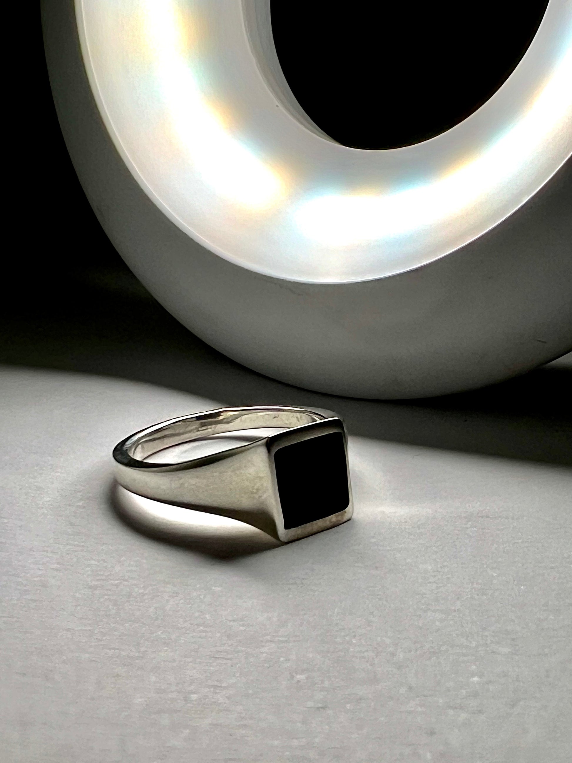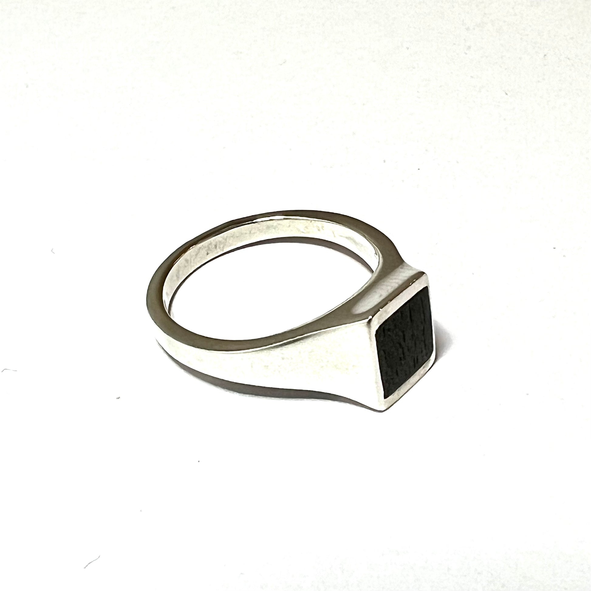 Alliant force et raffinement, cette chevalière rectangulaire associe la noblesse de l’argent 925 à la profondeur de l’ébène en son centre. Un contraste fort qui souligne l’élégance et le caractère unique de cette pièce.