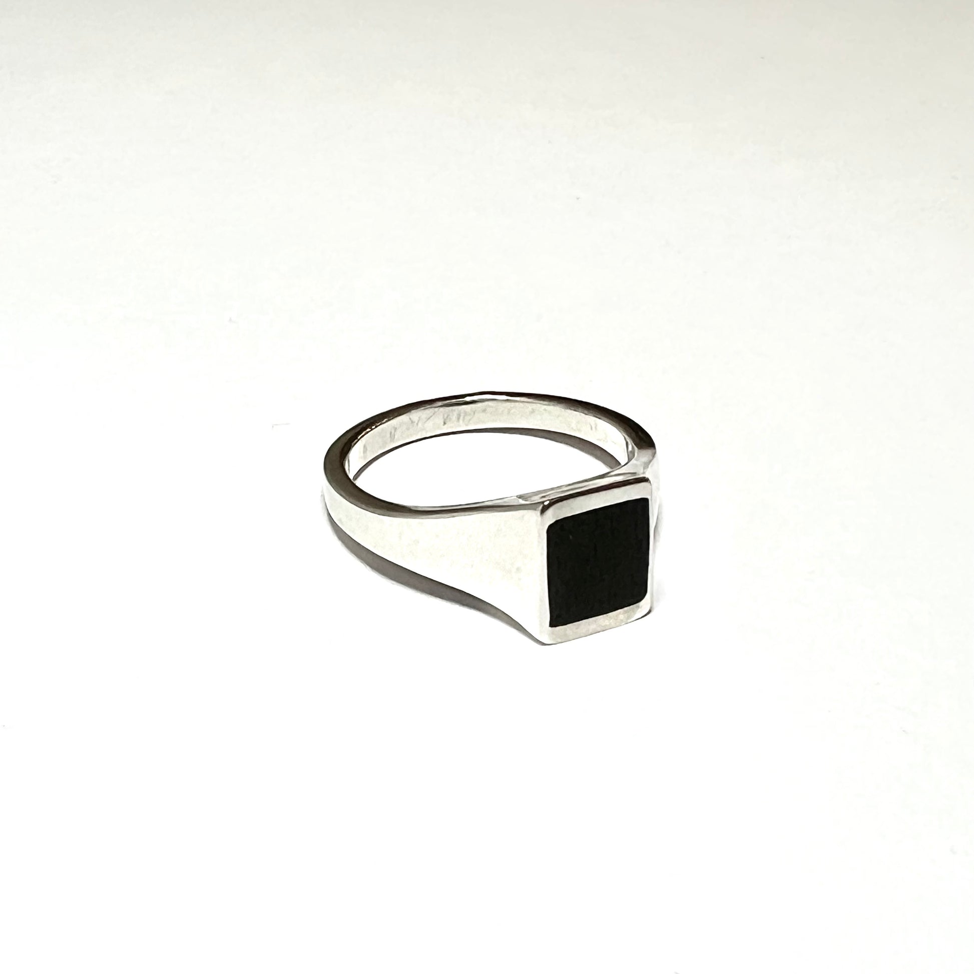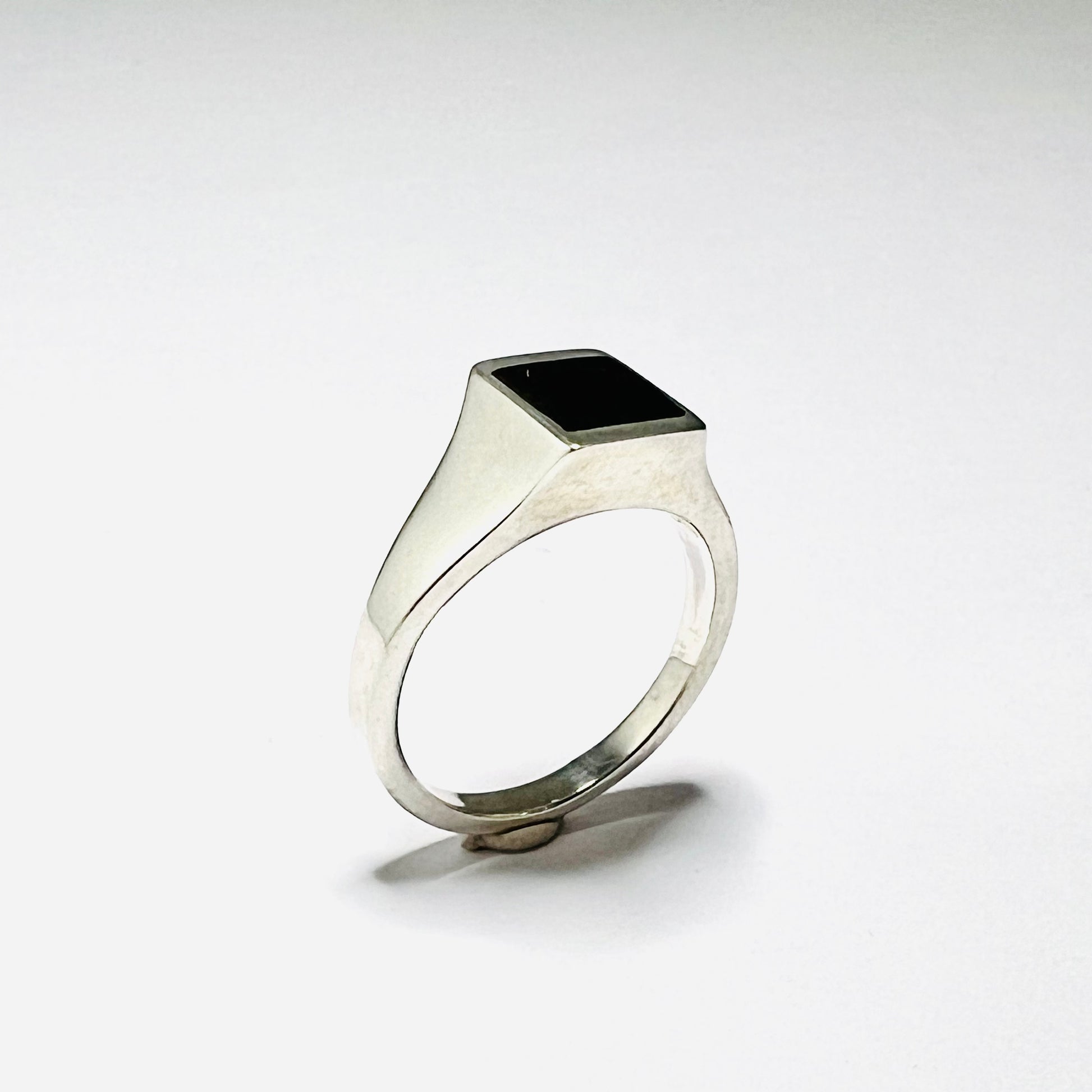 Chevalière Rectangulaire – Tête Centre Ébène & Argent 925