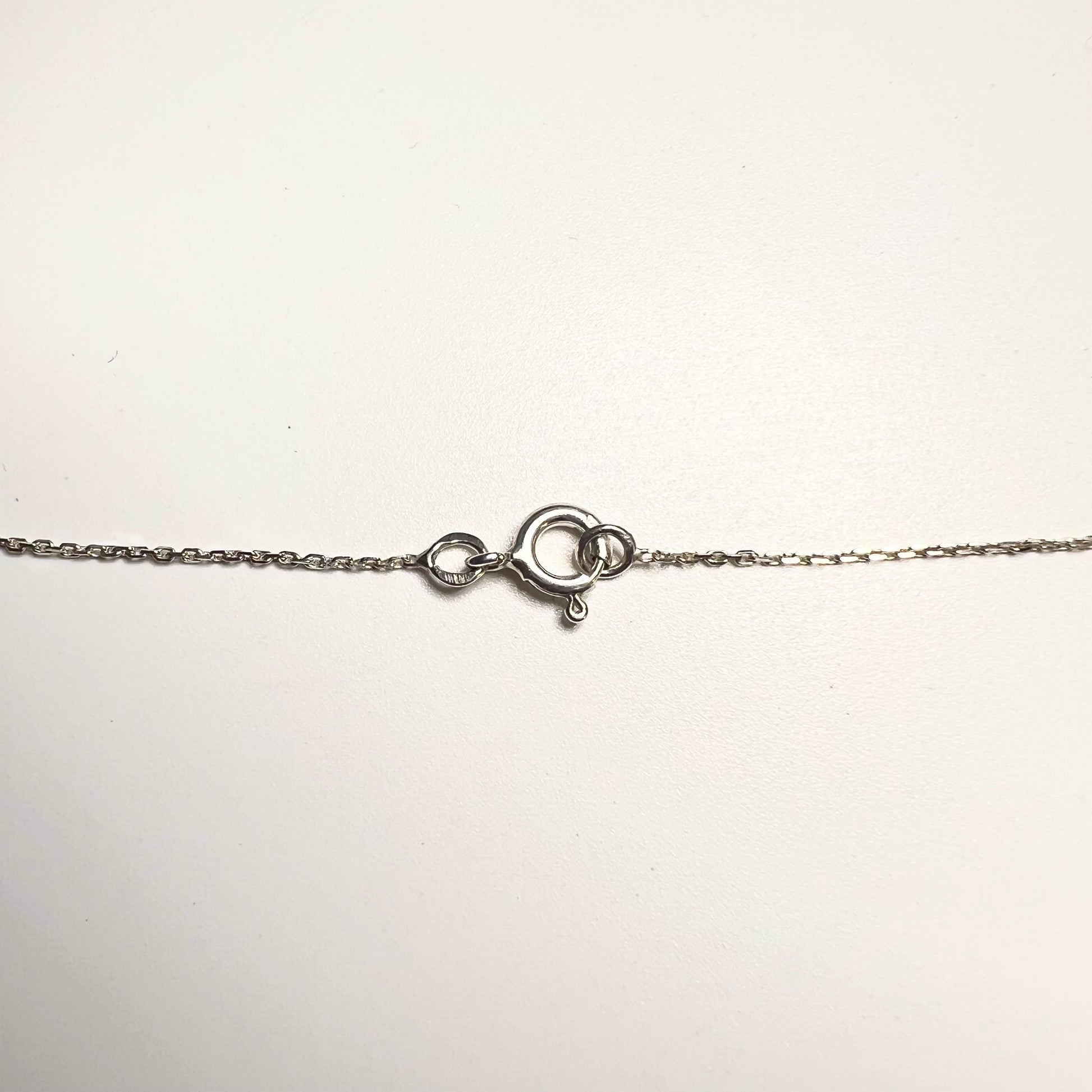 La finesse de la maille (0,7 mm de largeur, boule de 1 mm) souligne la délicatesse de la pierre, créant une parfaite harmonie entre élégance et pureté.