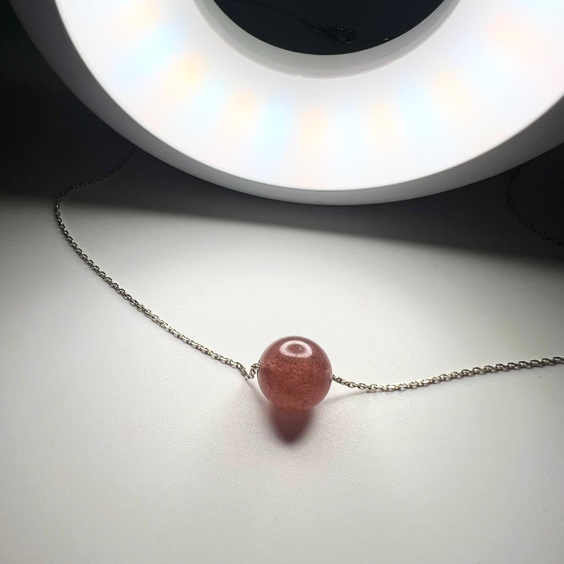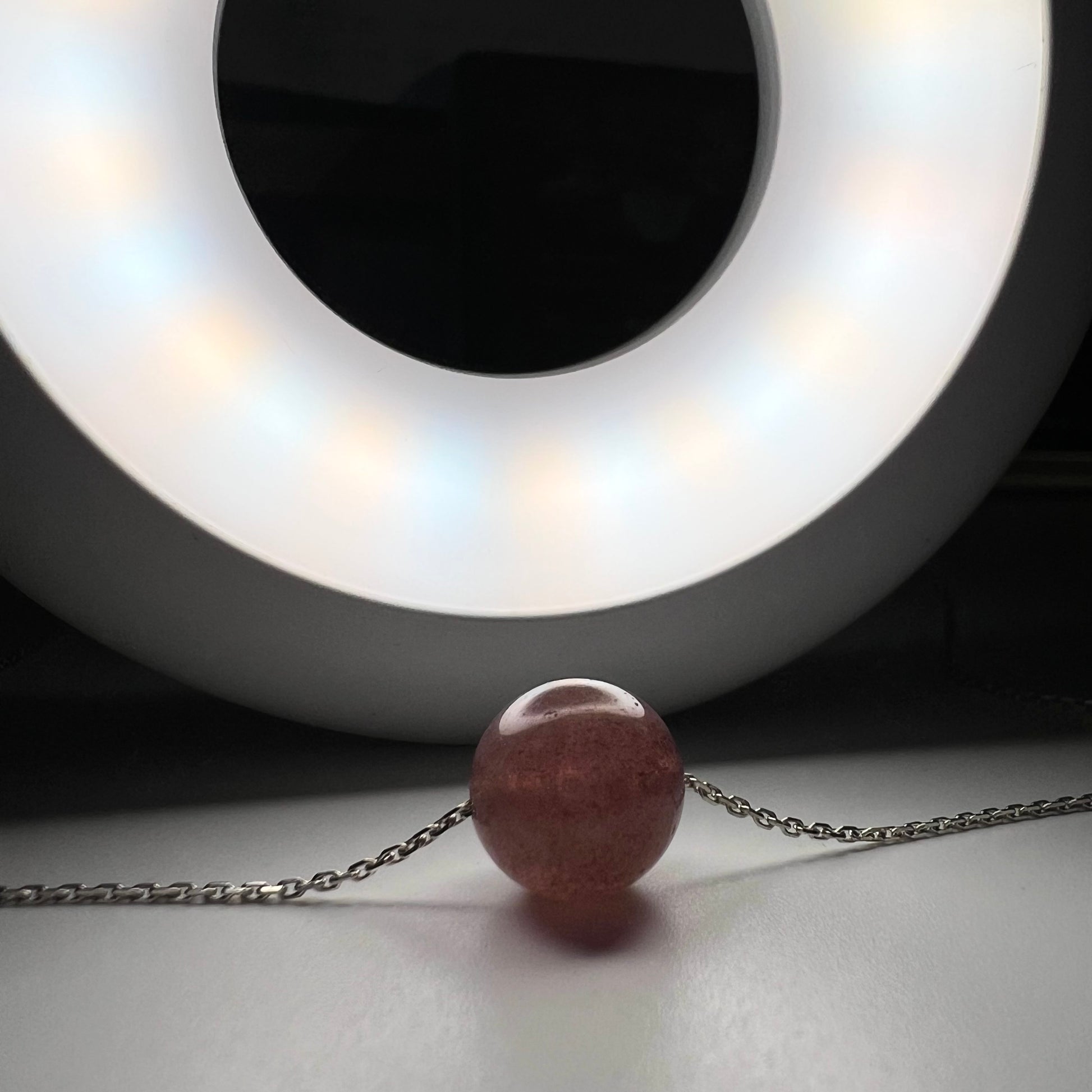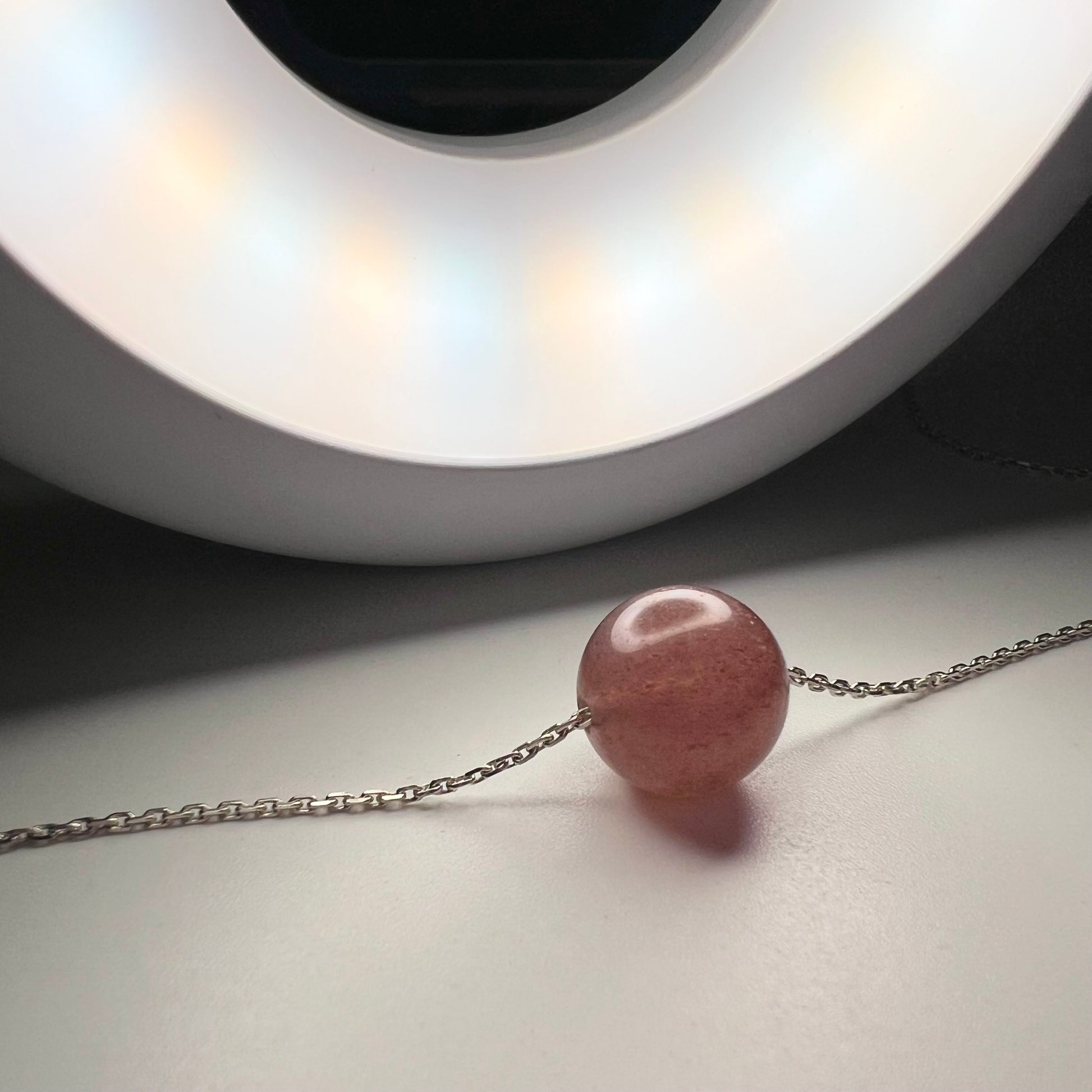 Cette chaîne délicate en argent 925 met en lumière une perle de quartz fraise, dont les nuances rosées symbolisent la douceur et la fraîcheur.