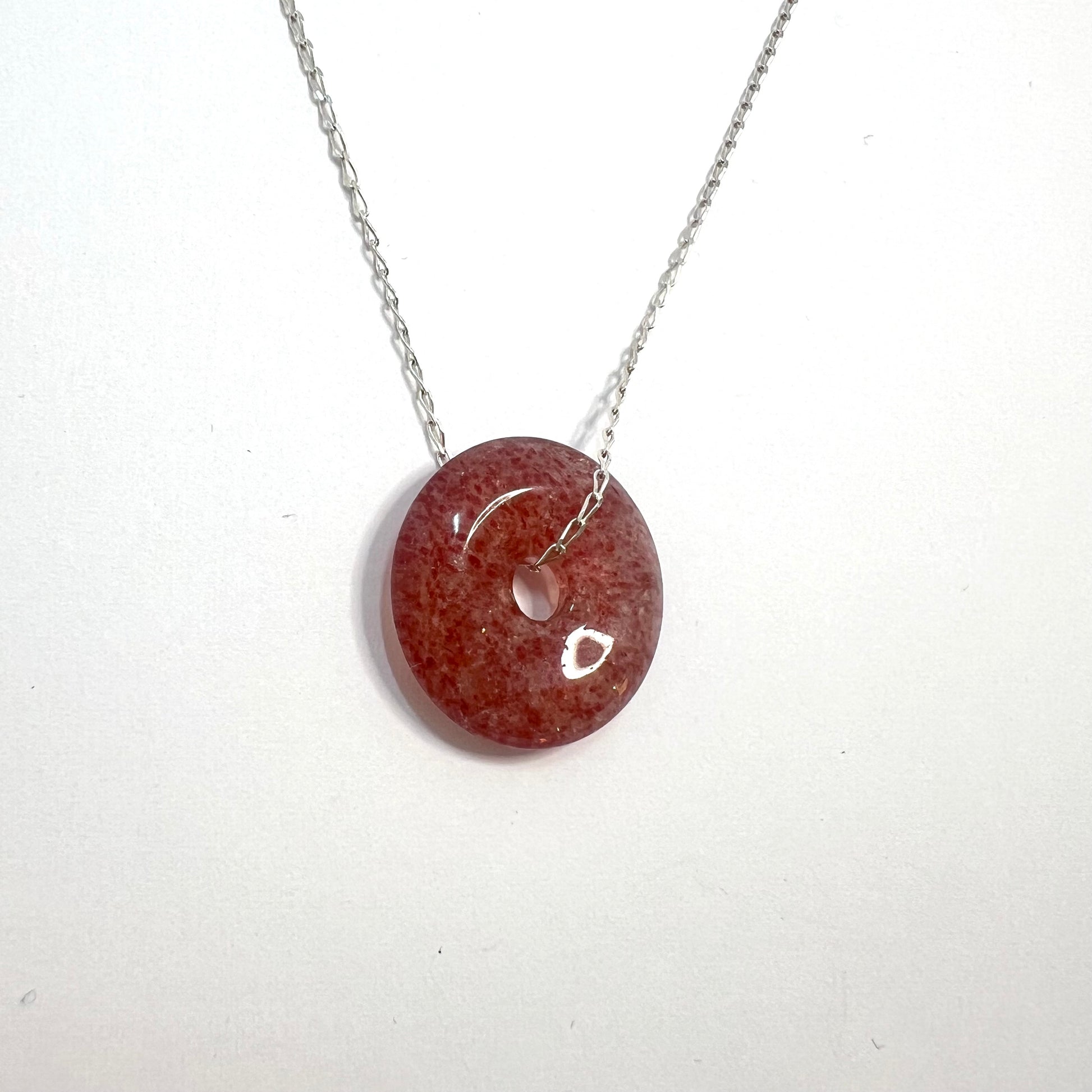 Ce collier raffiné associe une chaîne en maille cheval, fine et intemporelle, à un magnifique quartz fraise taillé en forme de donut. La douceur de ses nuances rosées diffuse une touche de couleur délicate et apaisante, tout en portant les symboles d’amour et de guérison.