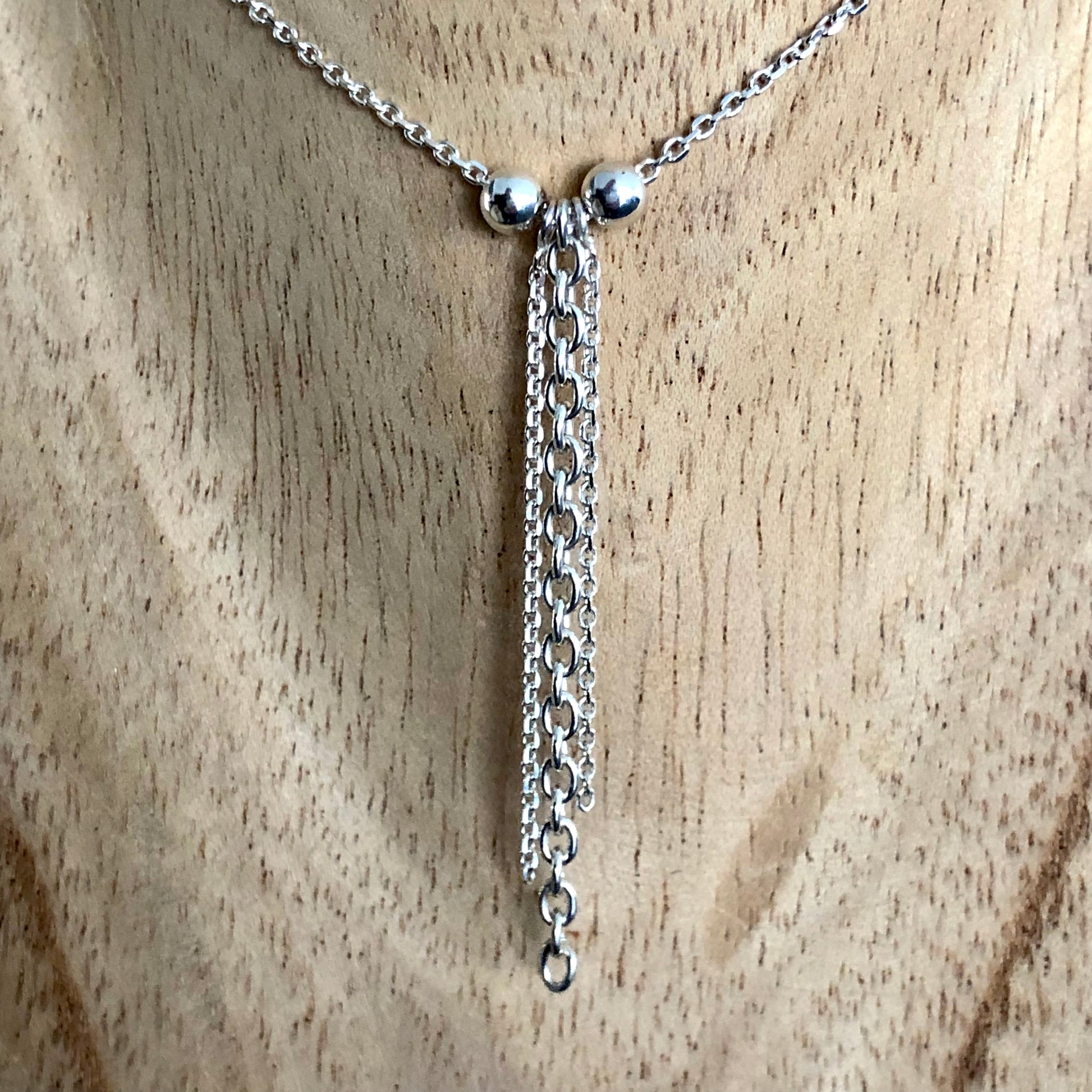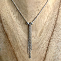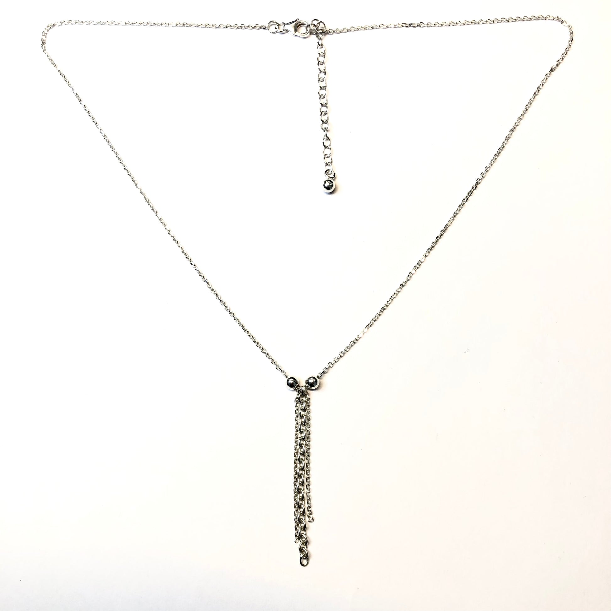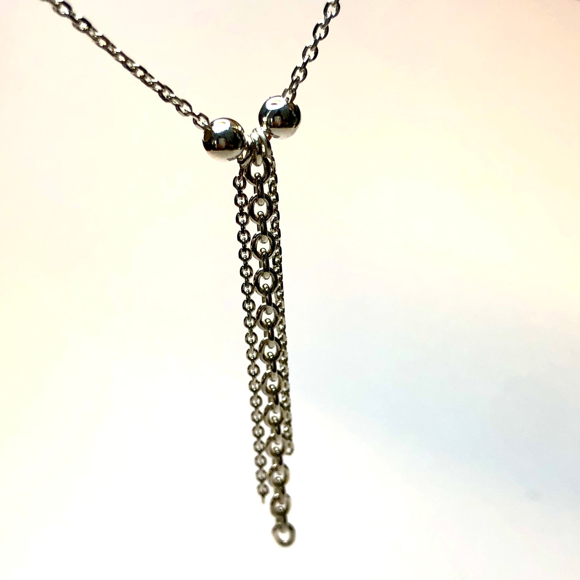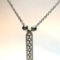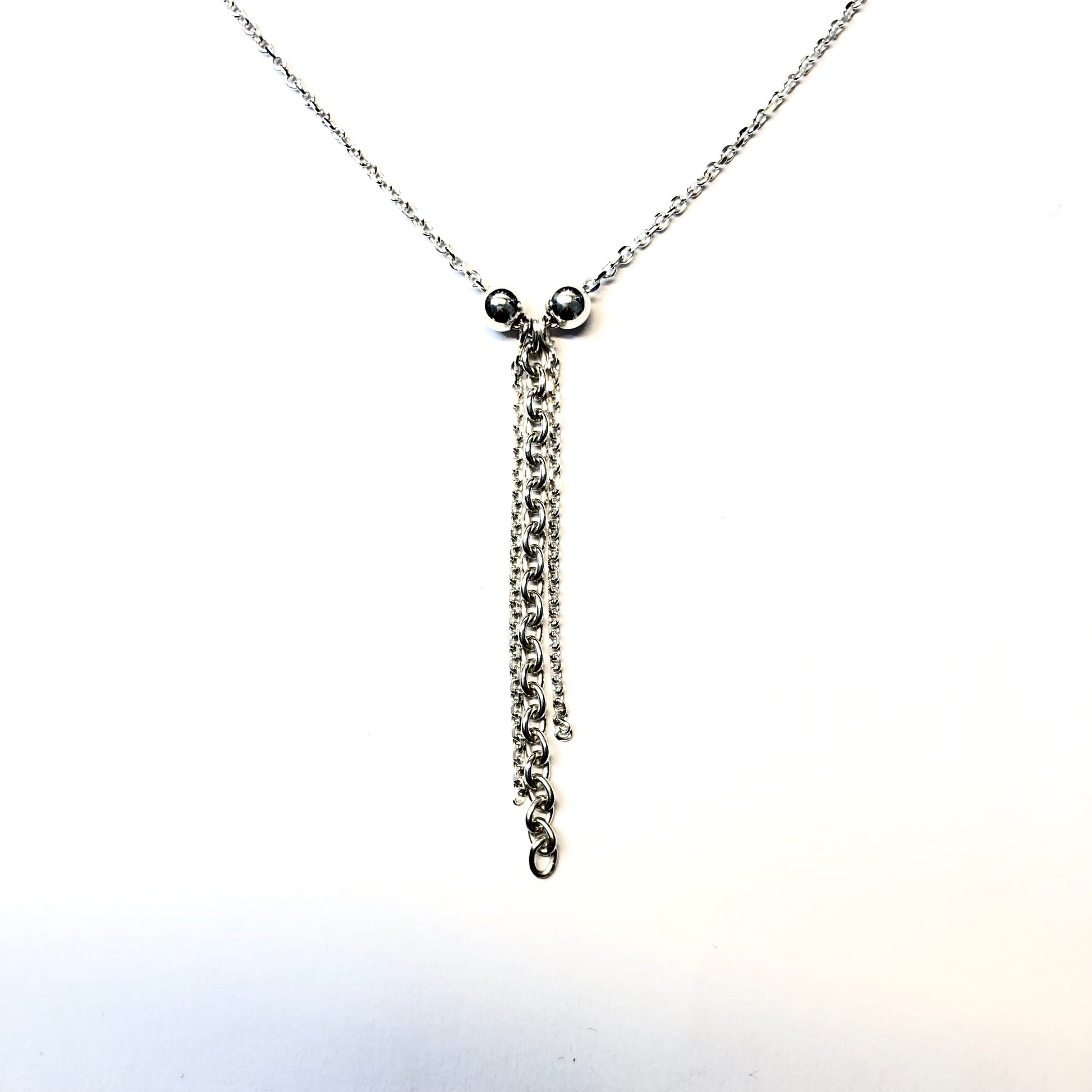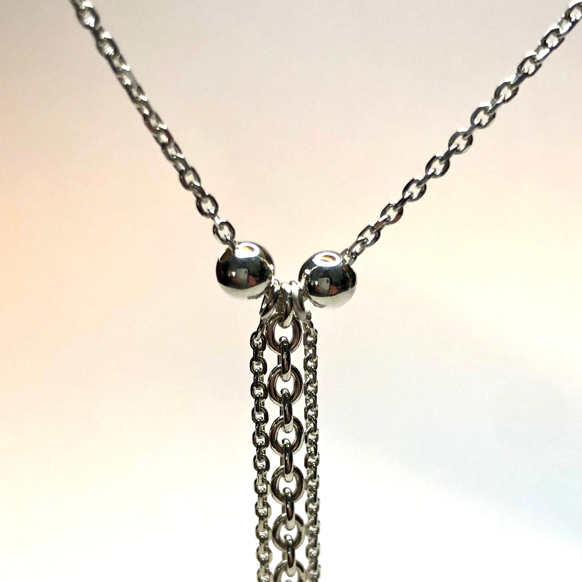 Entièrement fabriqué à la main, il révèle un pendentif en chaîne de 4,9 cm, délicatement encadré par deux boules de 4 mm, apportant équilibre et raffinement à l’ensemble.