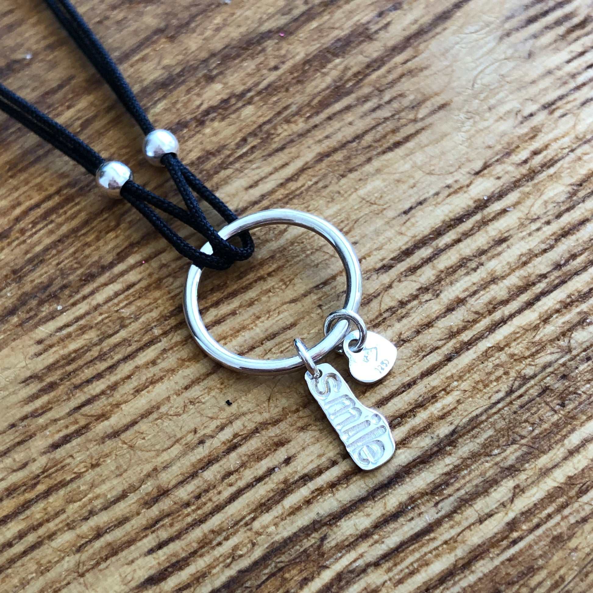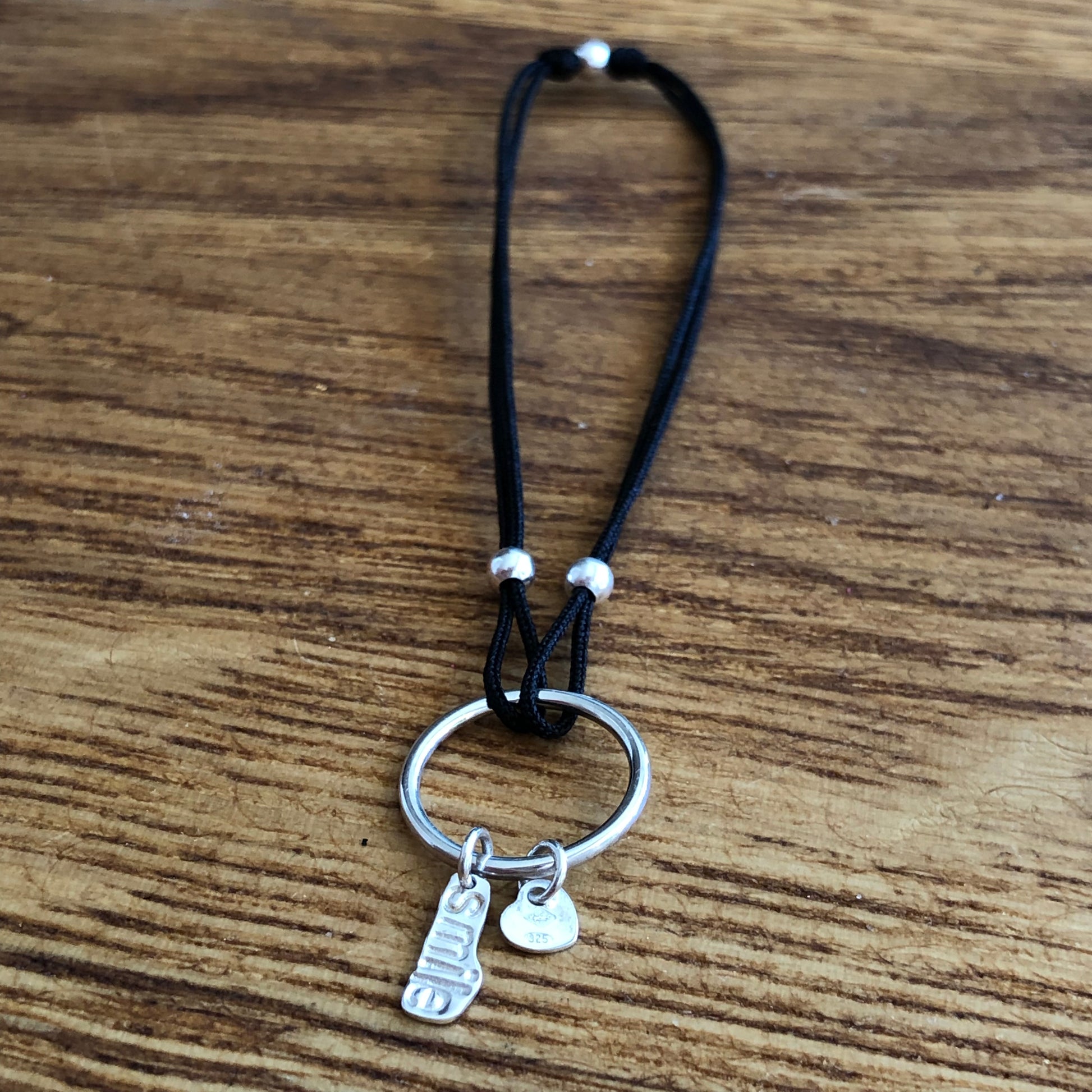 . Ce bracelet unique associe simplicité et émotion. Chaque pampille en argent massif 925 est frappée à la main des mots qui composent le titre, rendant chaque pièce singulière et profondément personnelle.