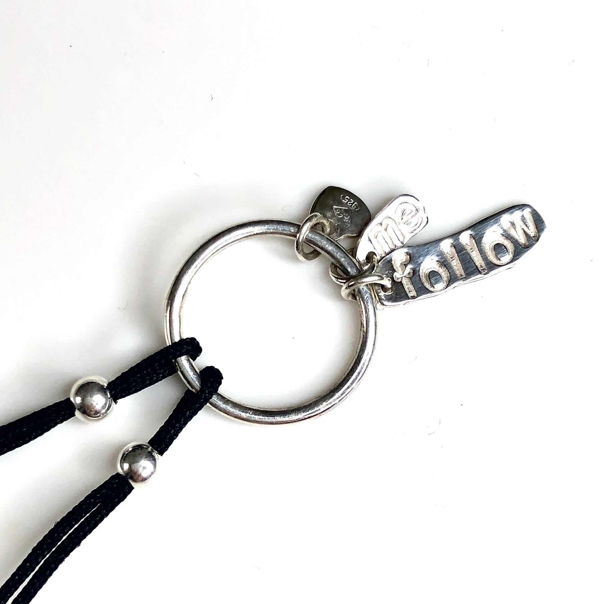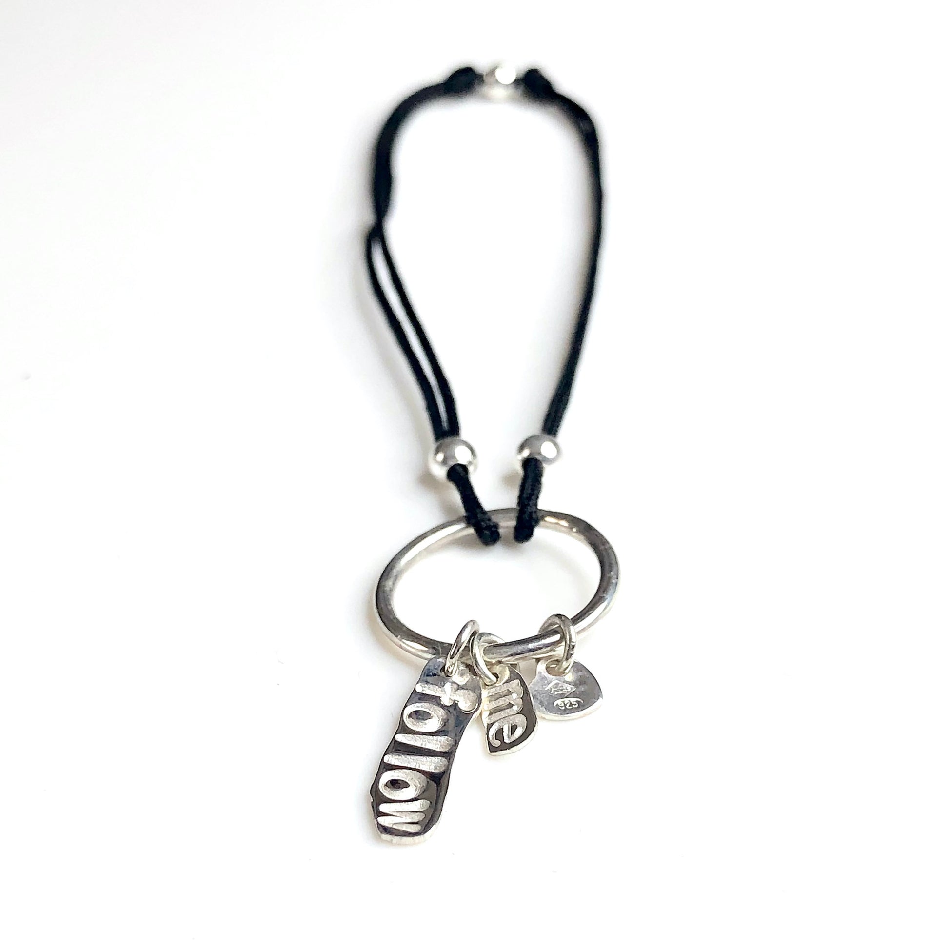 Inspiré de la chanson Follow me de Muse, ce bracelet unique associe simplicité et émotion. Chaque pampille en argent massif 925 est frappée à la main des mots qui composent le titre, rendant chaque pièce singulière et profondément personnelle.