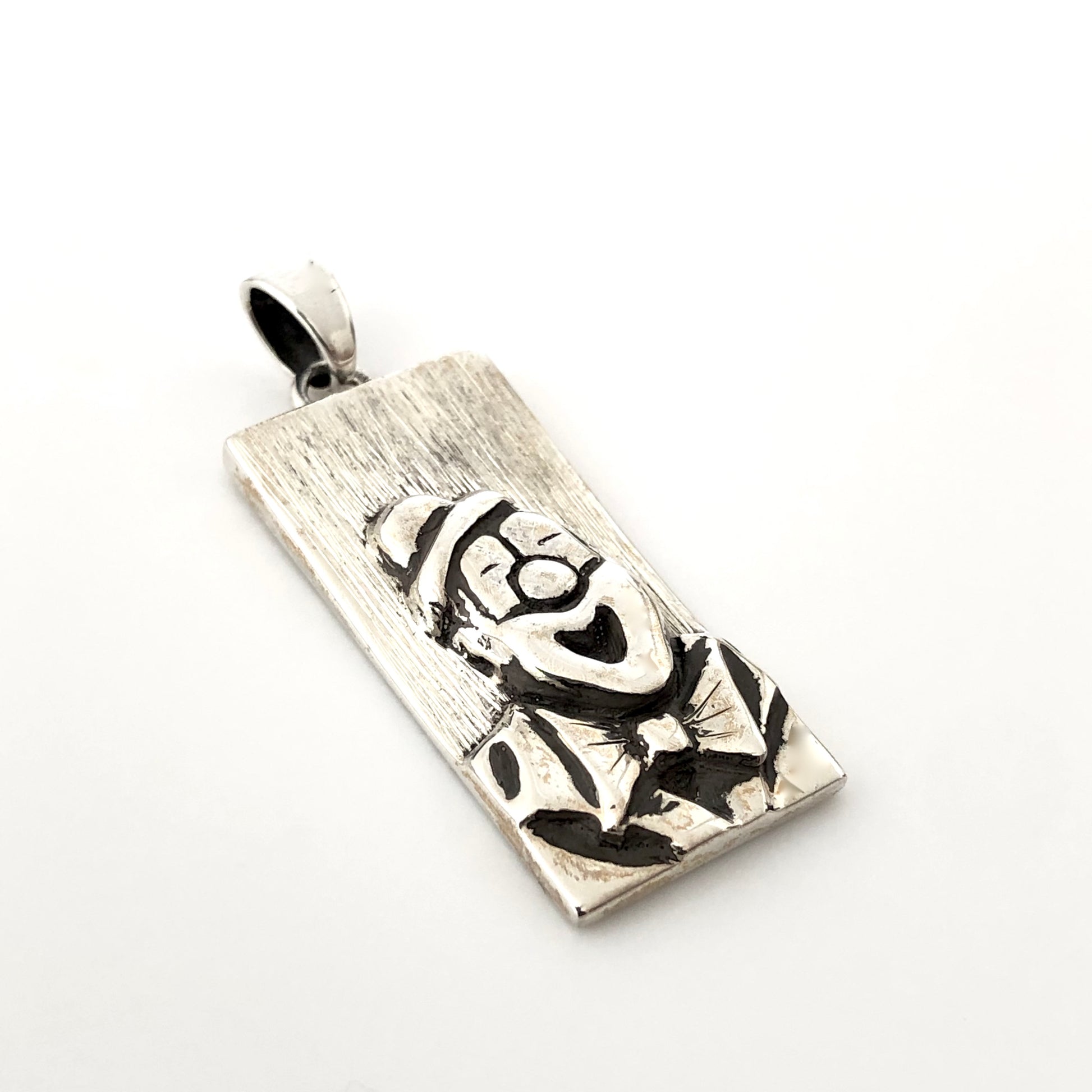 Apportez une touche d’originalité et de bonne humeur à votre style avec ce pendentif clown en argent massif 925. Sa gravure détaillée et son effet de relief mettent en valeur l’expression joyeuse du clown, symbole de fantaisie et de légèreté.