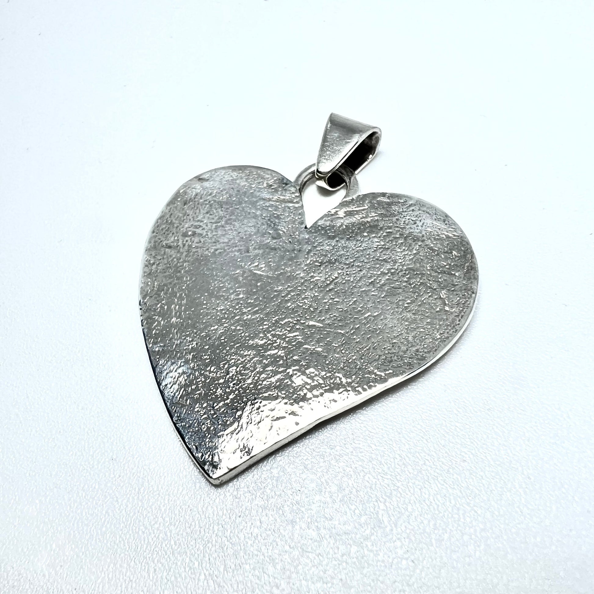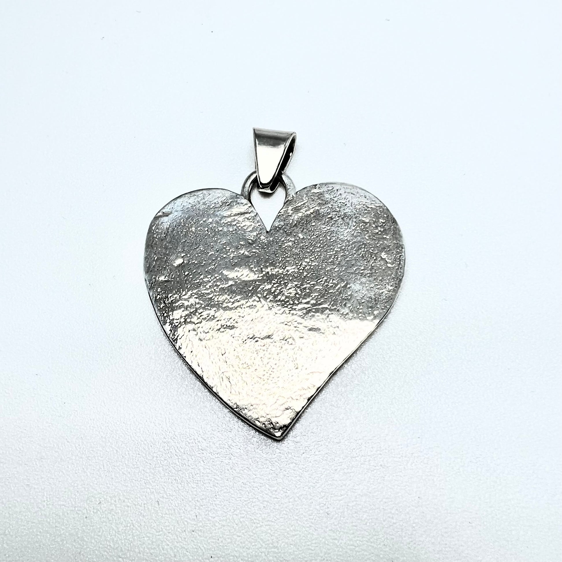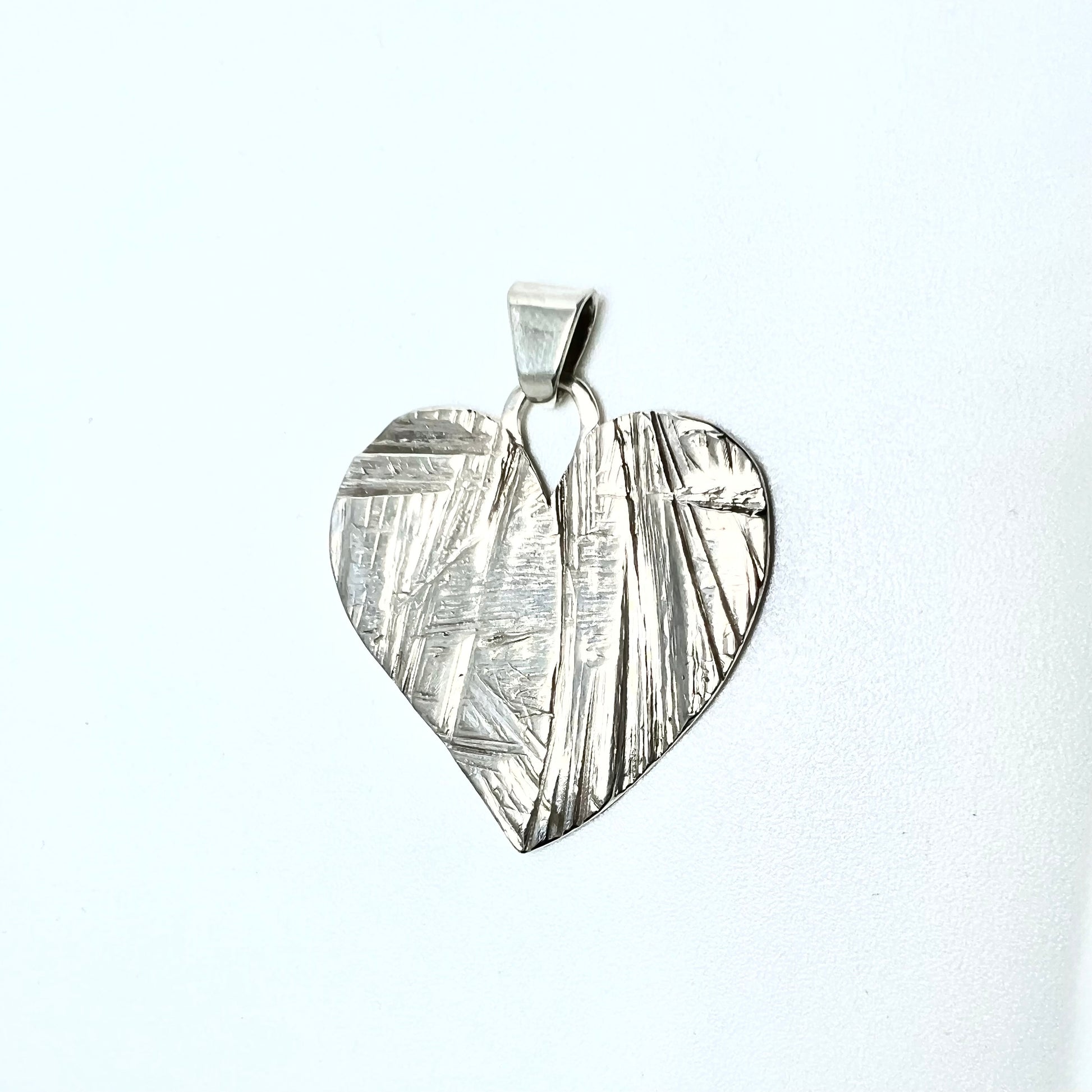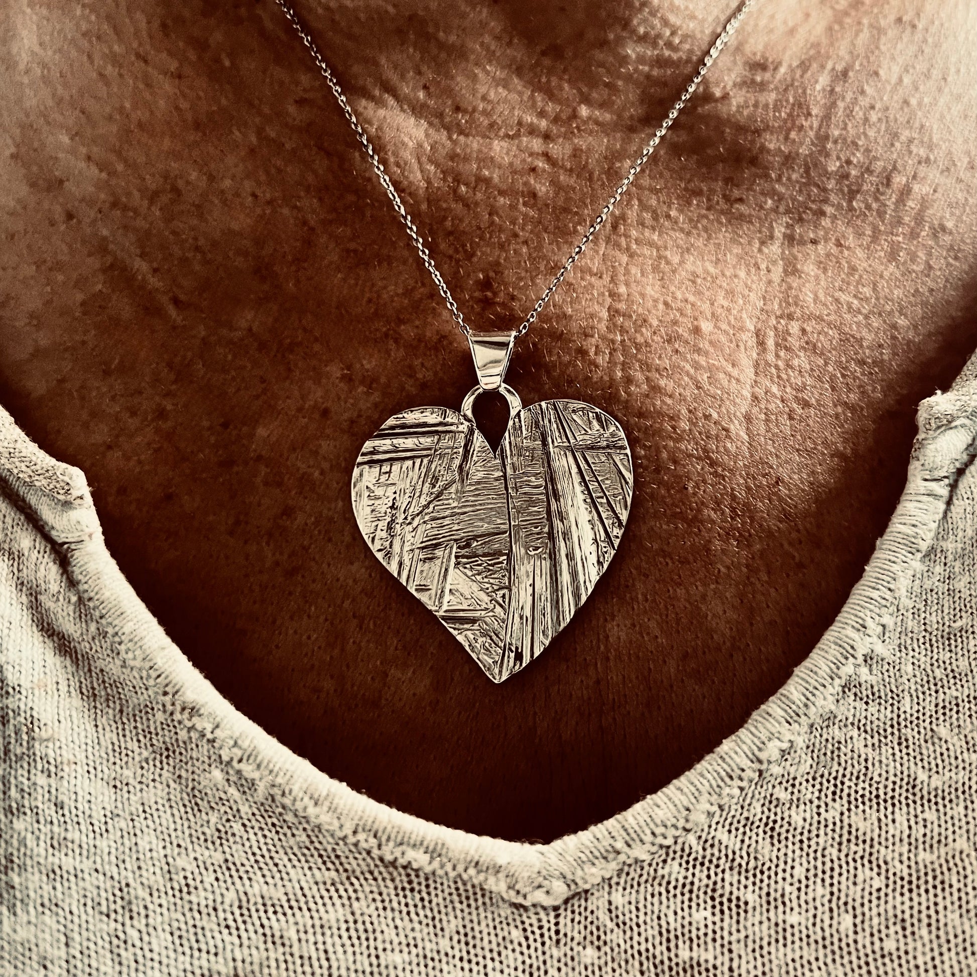Ce pendentif cœur a été façonné à partir d’une cire découpée entièrement à la scie, laissant volontairement apparaître les traces de travail pour révéler toute la beauté du geste artisanal. Chaque marque raconte un mouvement, une intention, offrant à ce bijou une texture brute, authentique et profondément unique. Réalisé en argent 925, il allie caractère et sensibilité dans une pièce au style affirmé.
