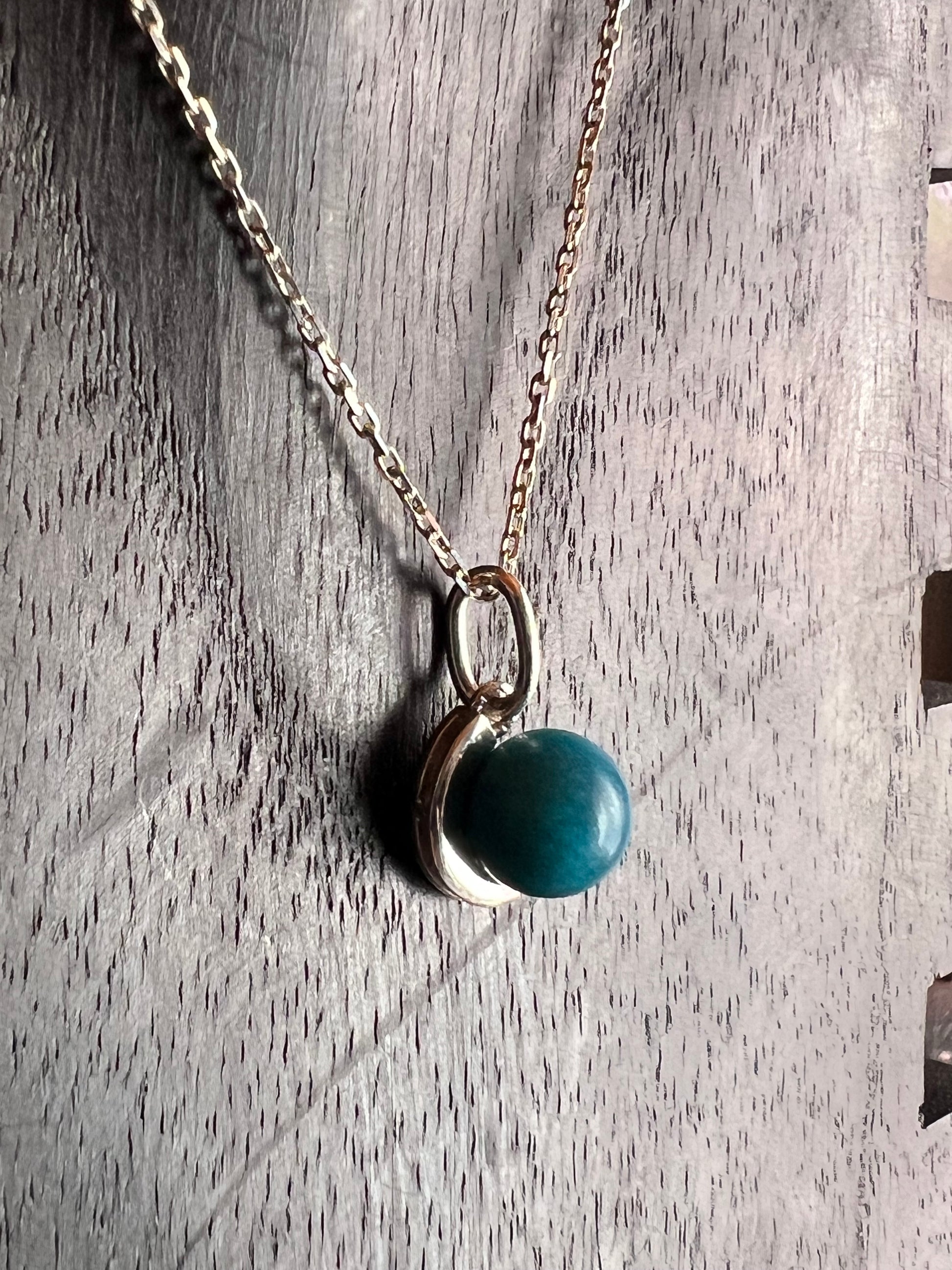 Ce pendentif en forme de lune, façonné avec soin en argent 925, évoque la beauté mystérieuse d’une éclipse céleste.