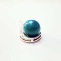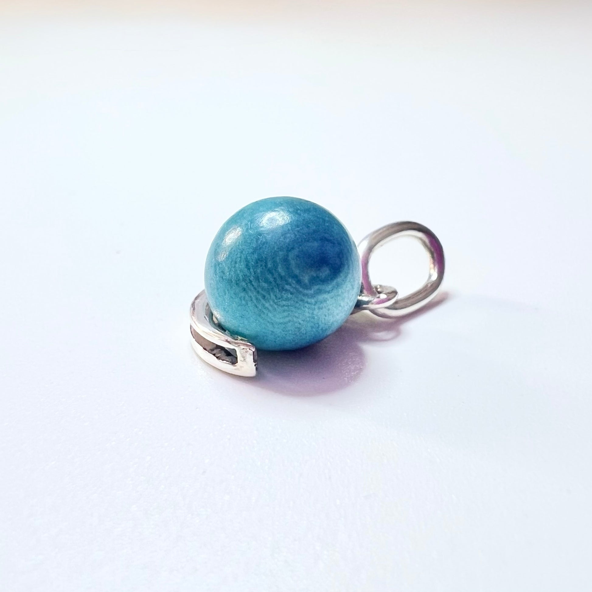 Au creux du croissant, une boule de tagua bleue (9 mm), lisse et éclatante, apporte une touche vibrante et unique.
