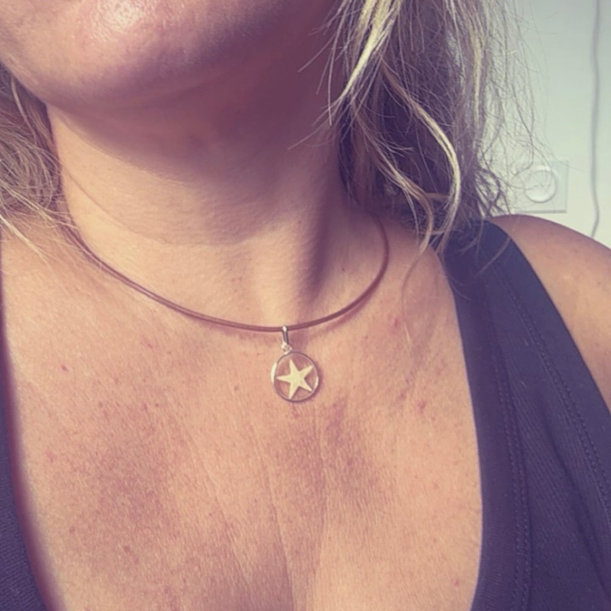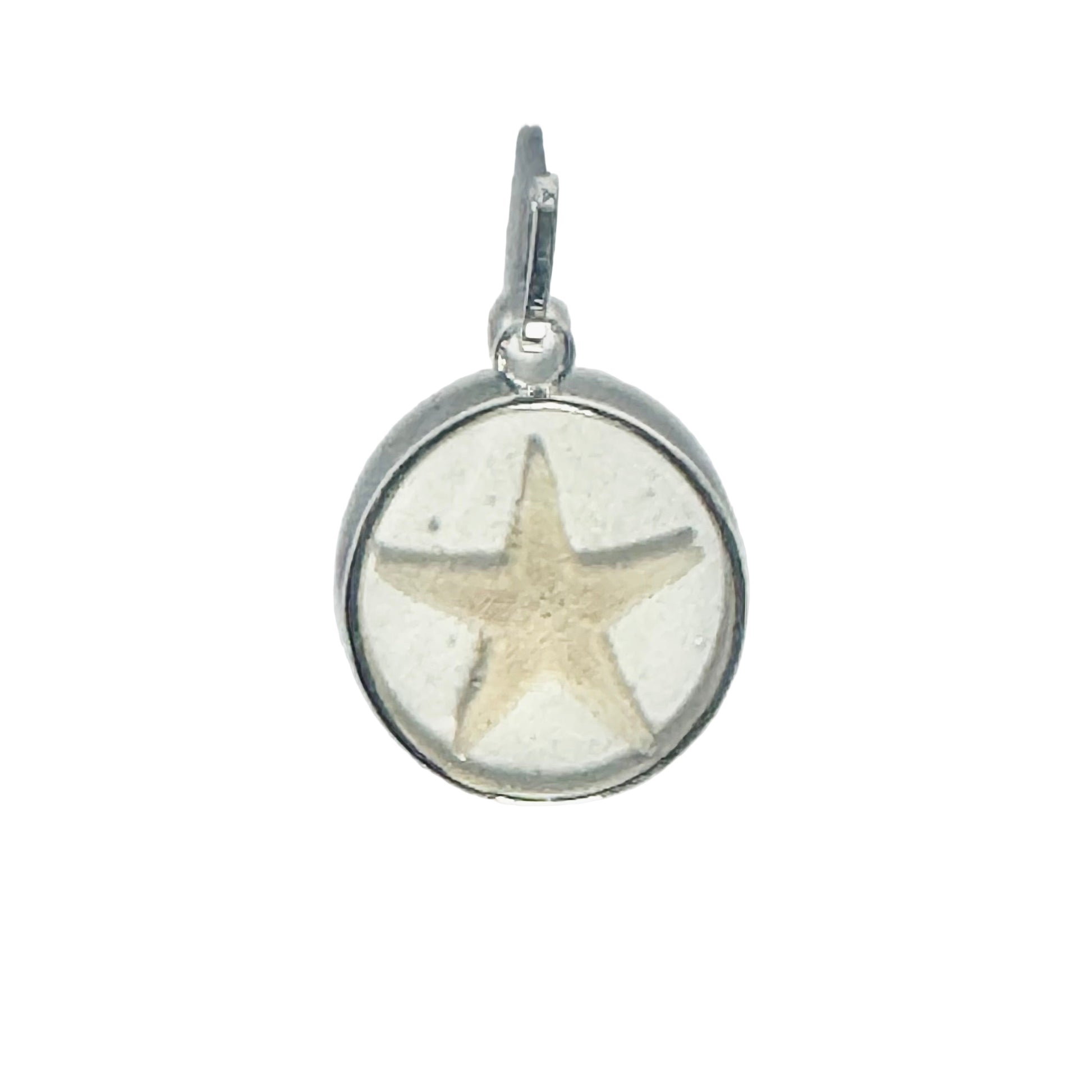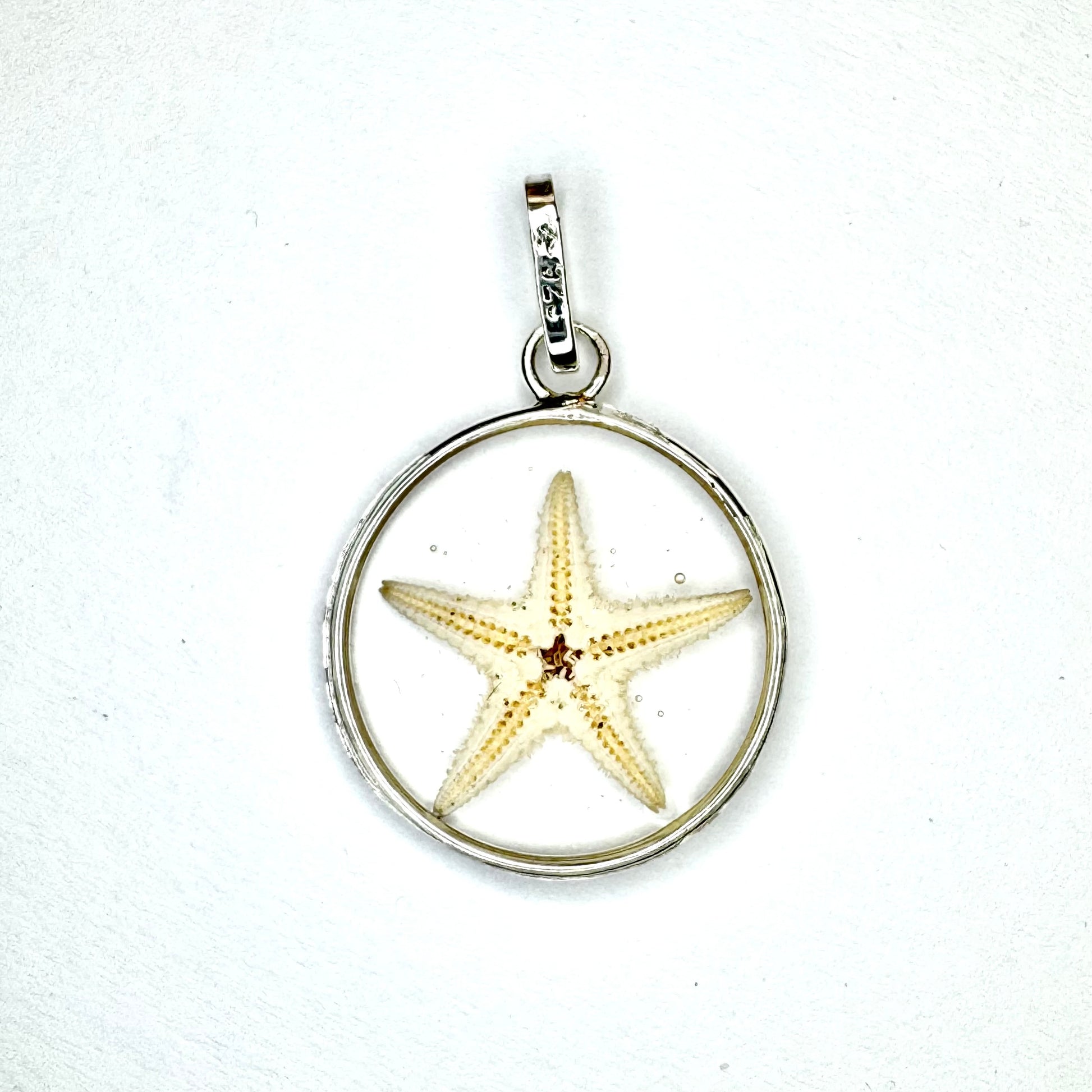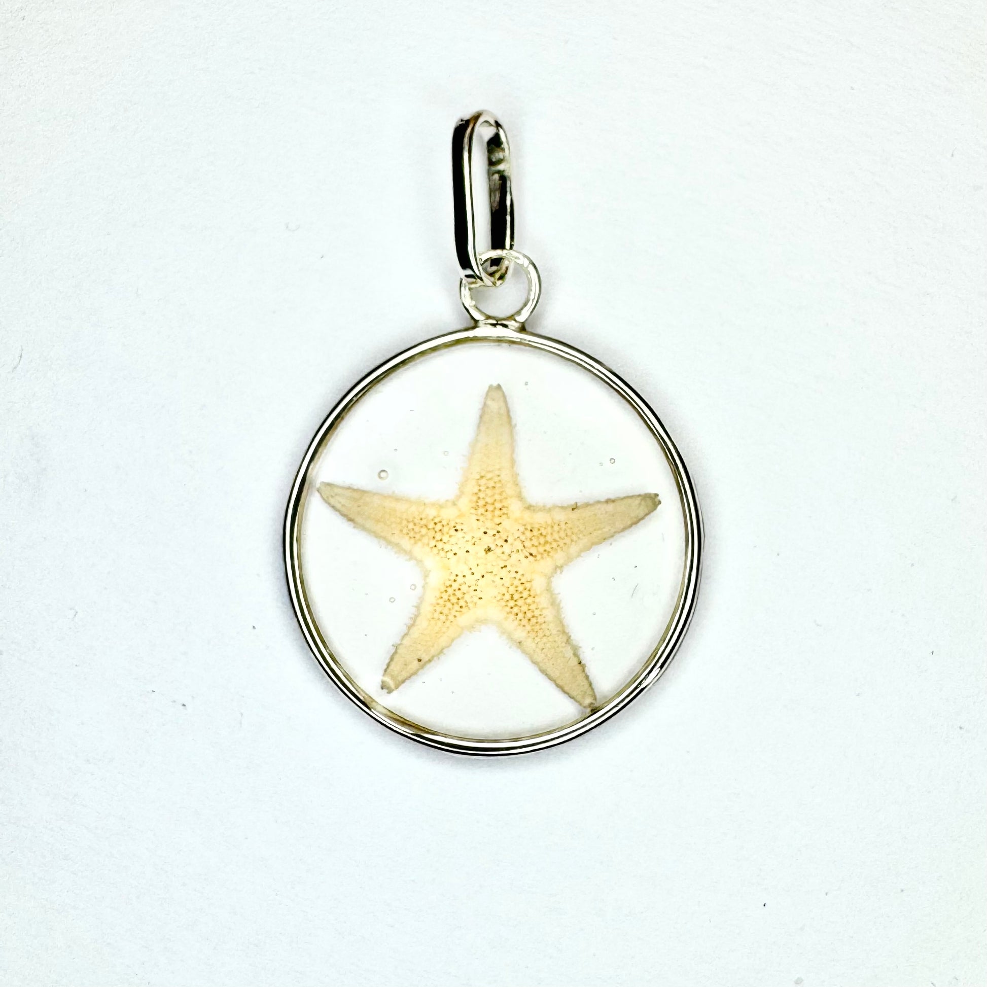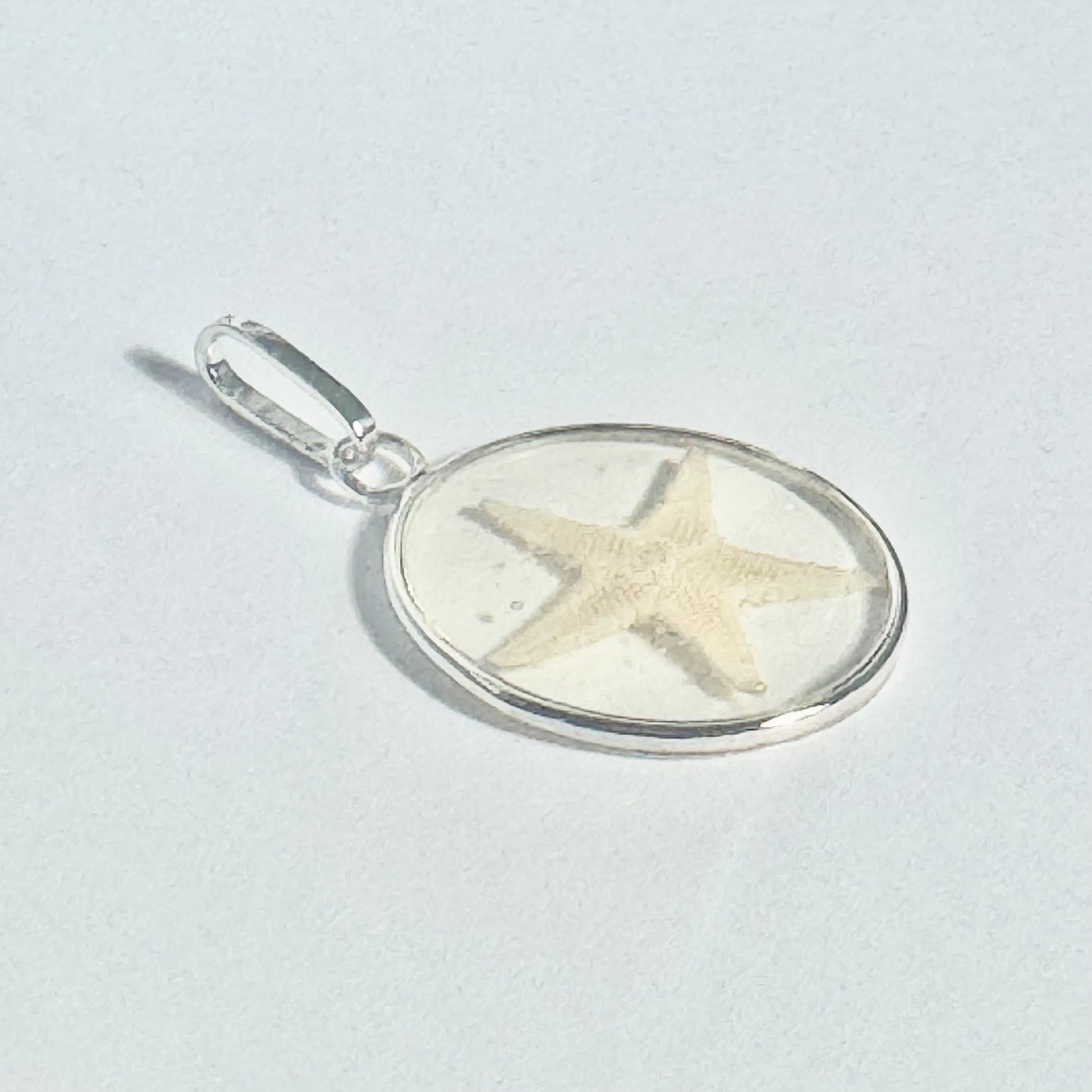 Ce pendentif unique renferme une véritable petite étoile de mer séchée, préservée avec soin dans un gel UV transparent qui met en valeur ses détails naturels et sa délicate teinte.
