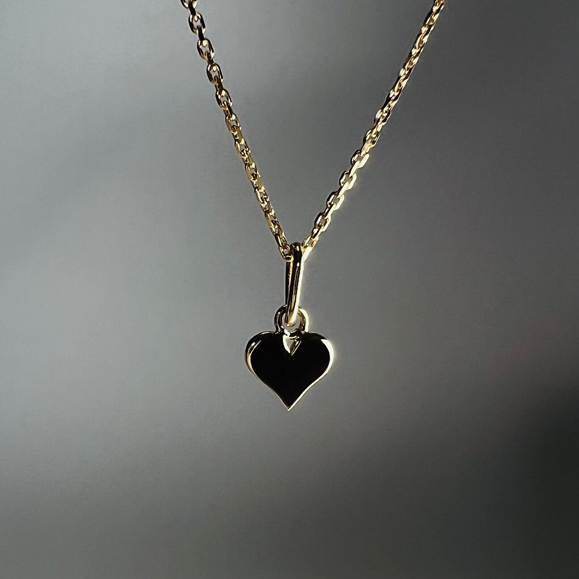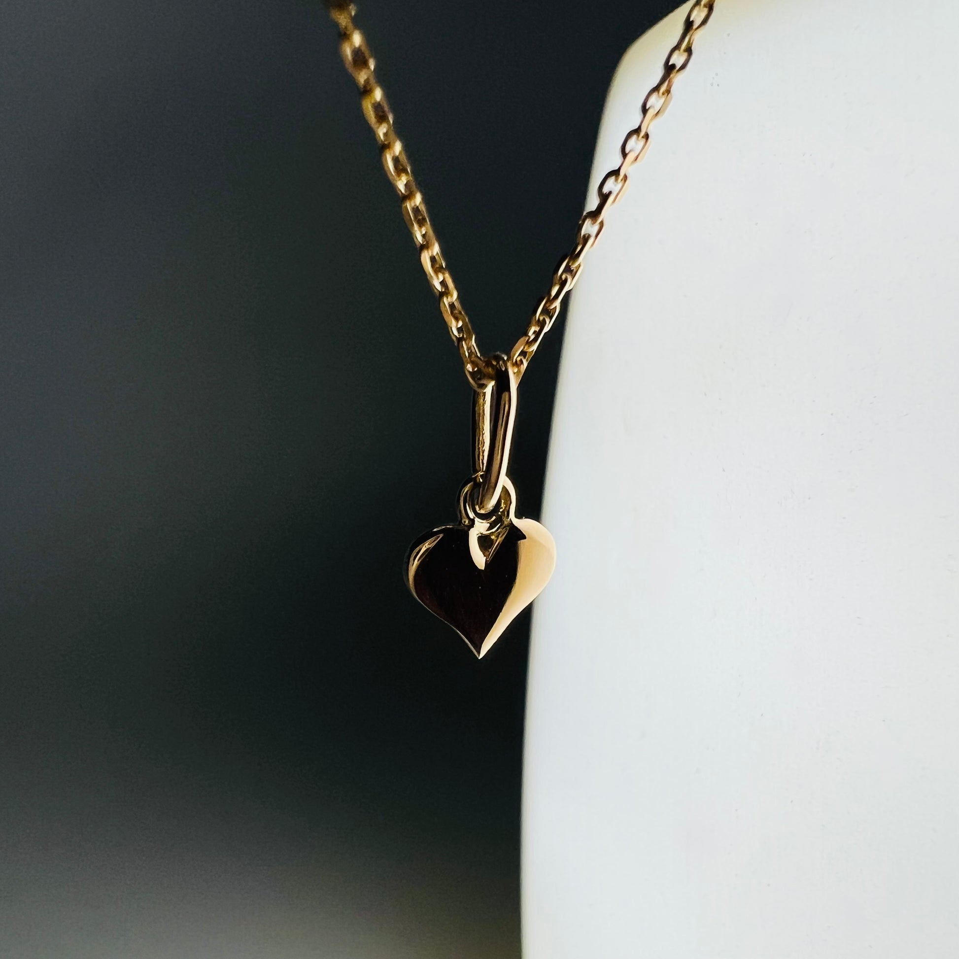 Ce pendentif en forme de petit cœur, façonné à la main en or jaune 18K, incarne la douceur et la tendresse.