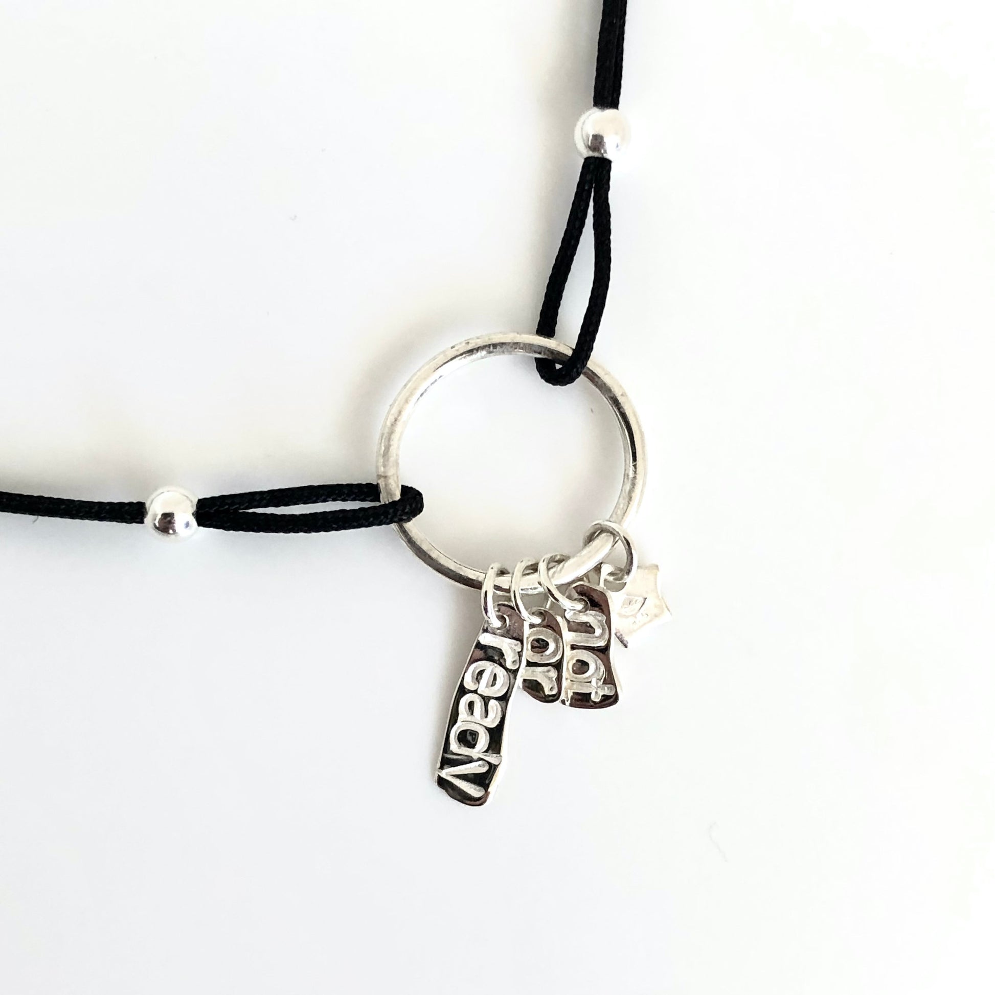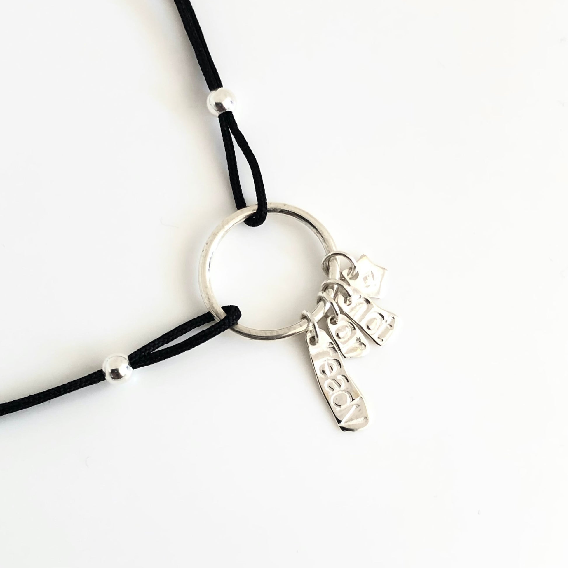 Inspiré de la chanson Ready or not de The fugees. Ce bracelet unique associe simplicité et émotion. Chaque pampille en argent massif 925 est frappée à la main des mots qui composent le titre, rendant chaque pièce singulière et profondément personnelle.