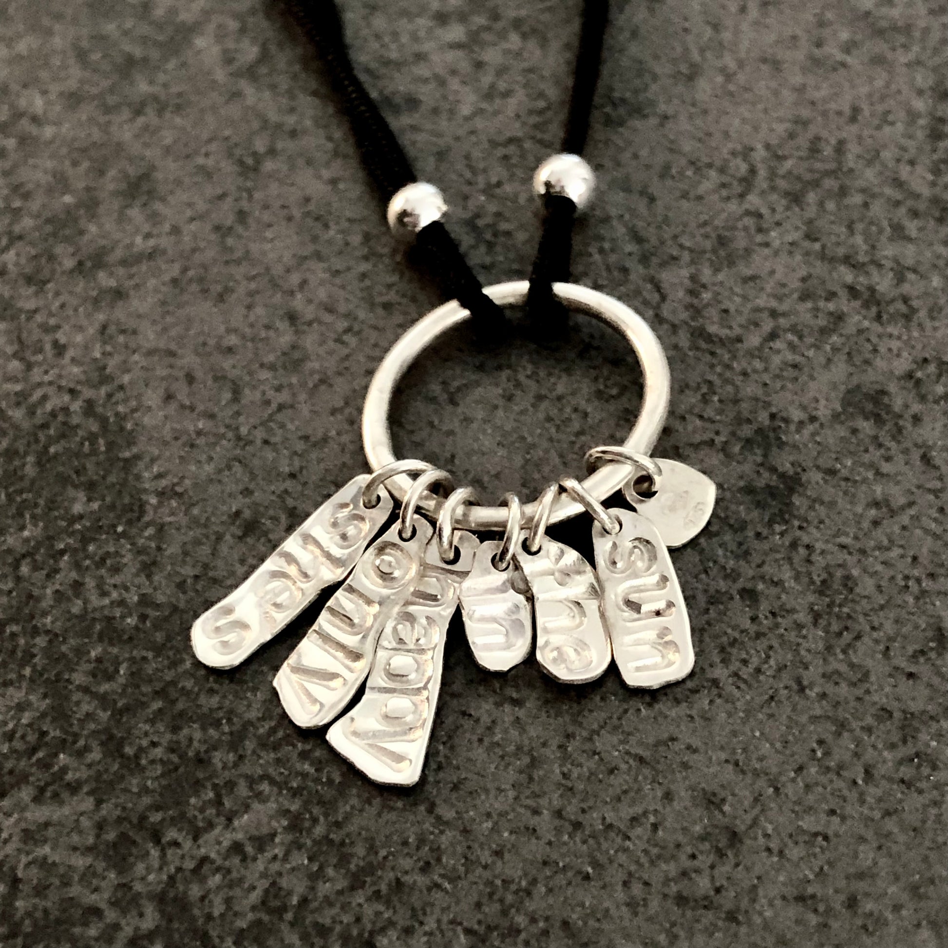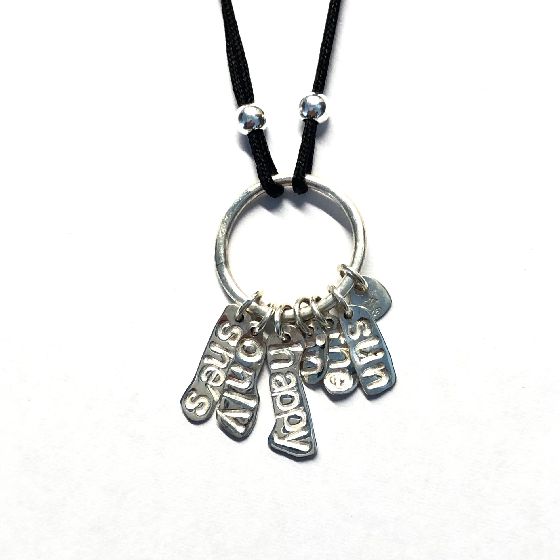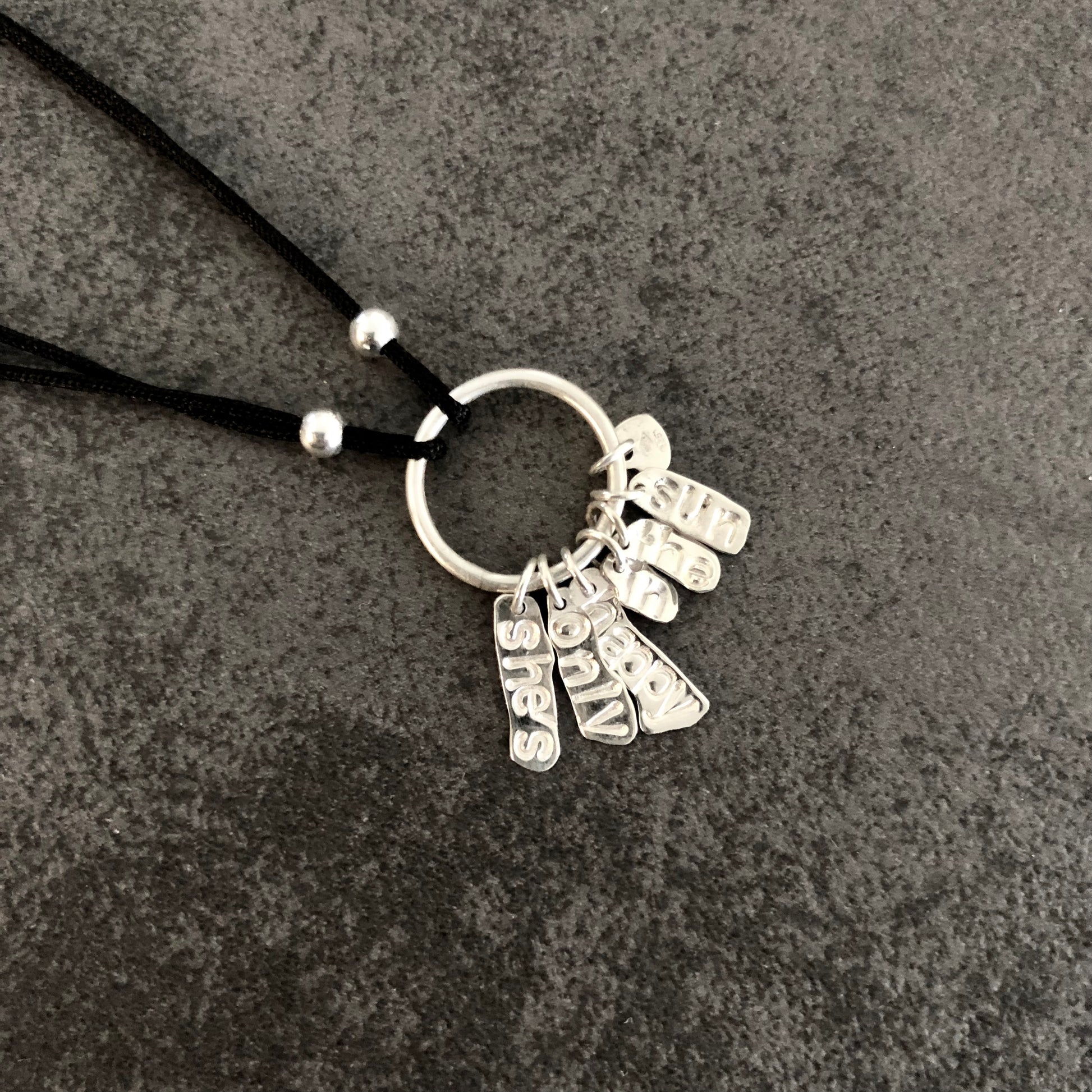 Ce bracelet unique associe simplicité et émotion. Chaque pampille en argent massif 925 est frappée à la main des mots qui composent le titre, rendant chaque pièce singulière et profondément personnelle.