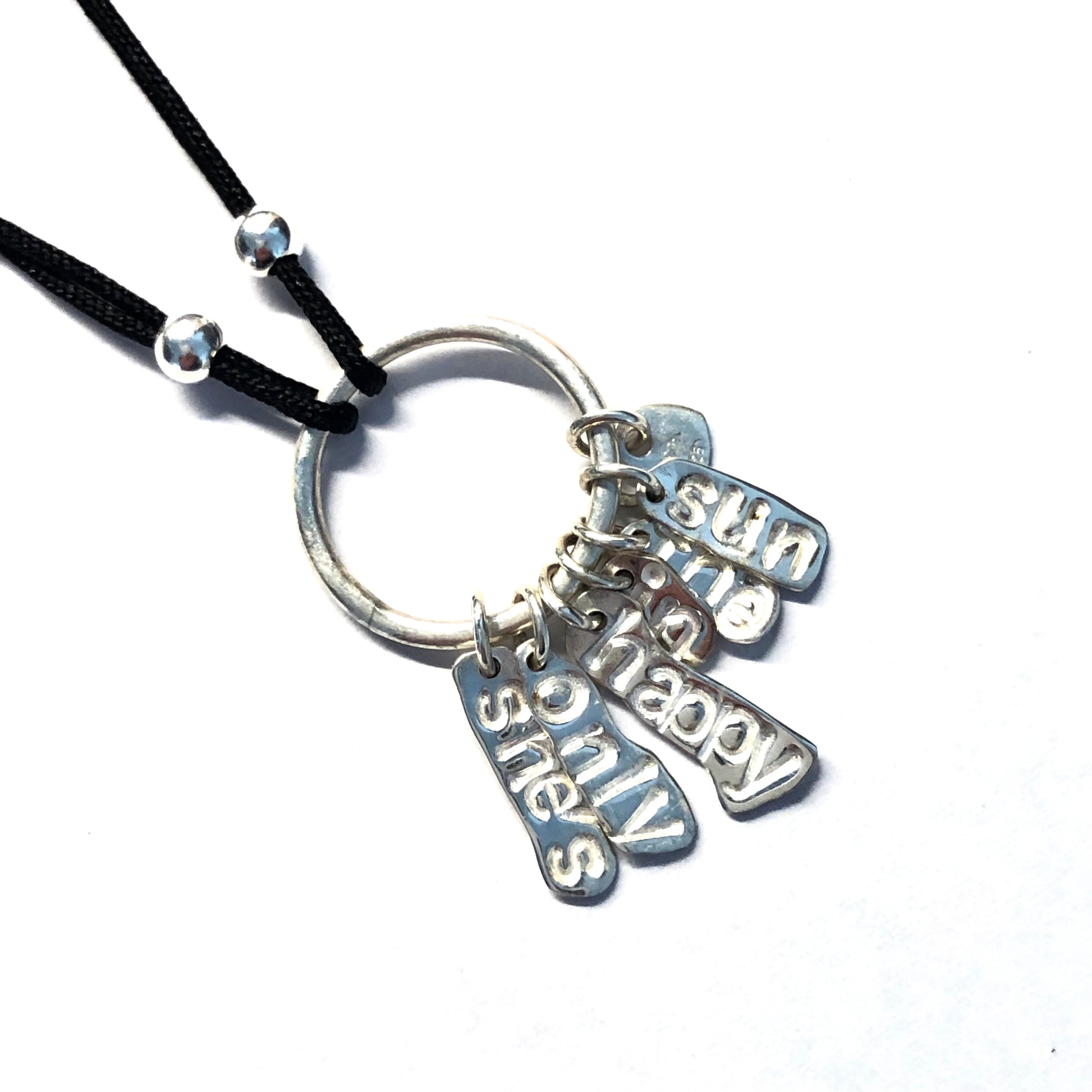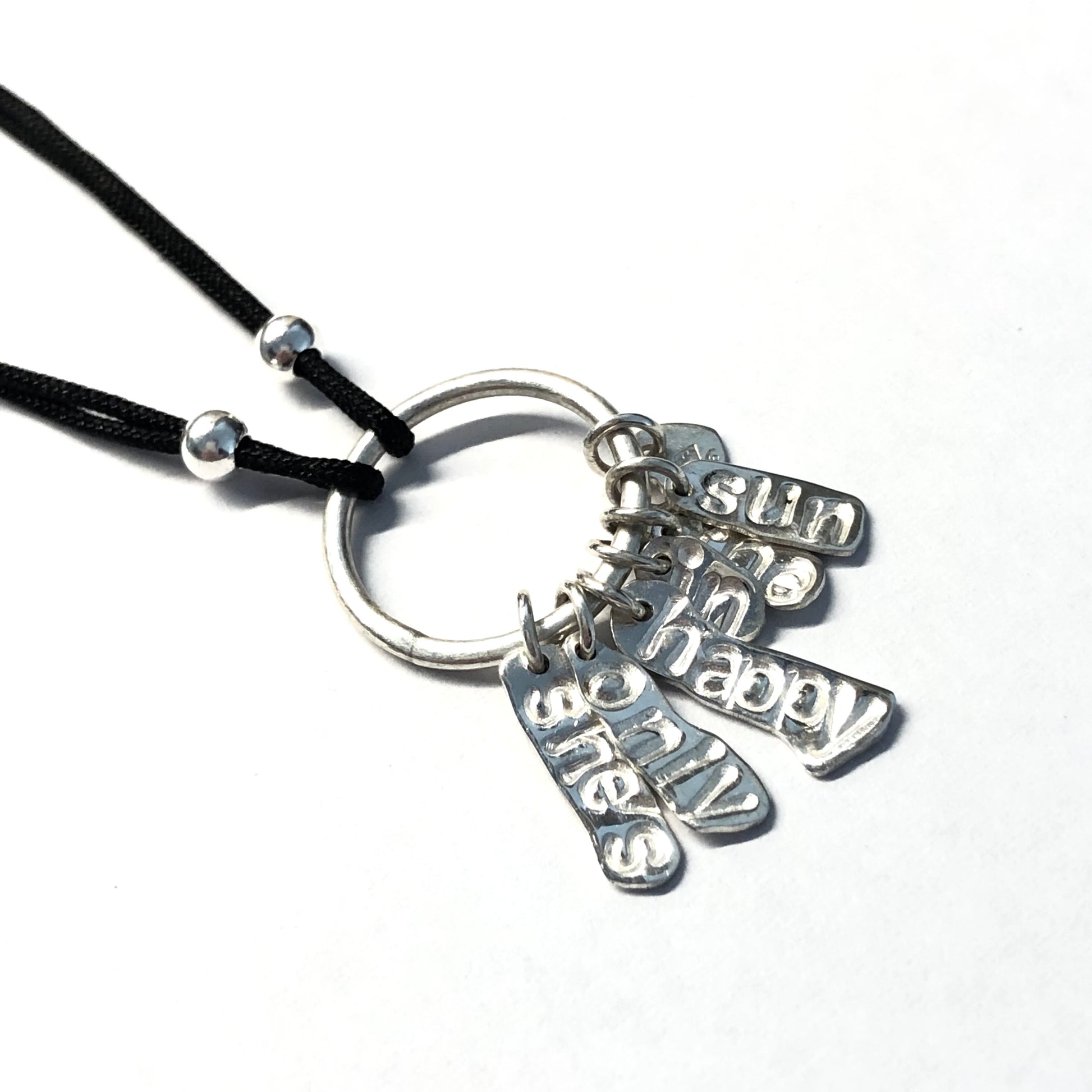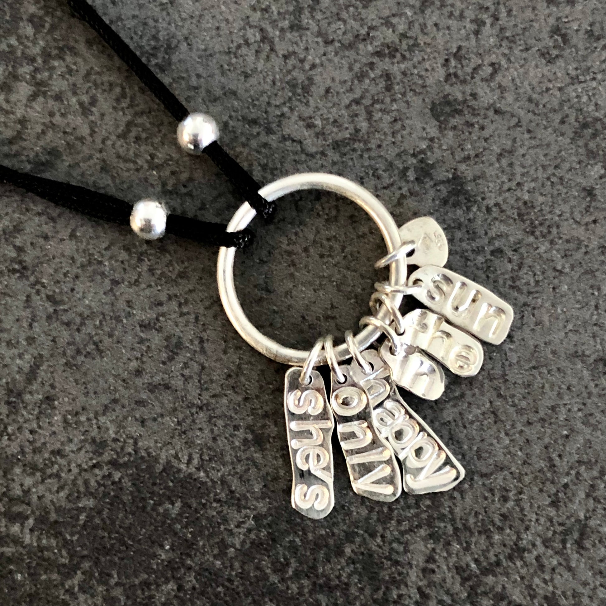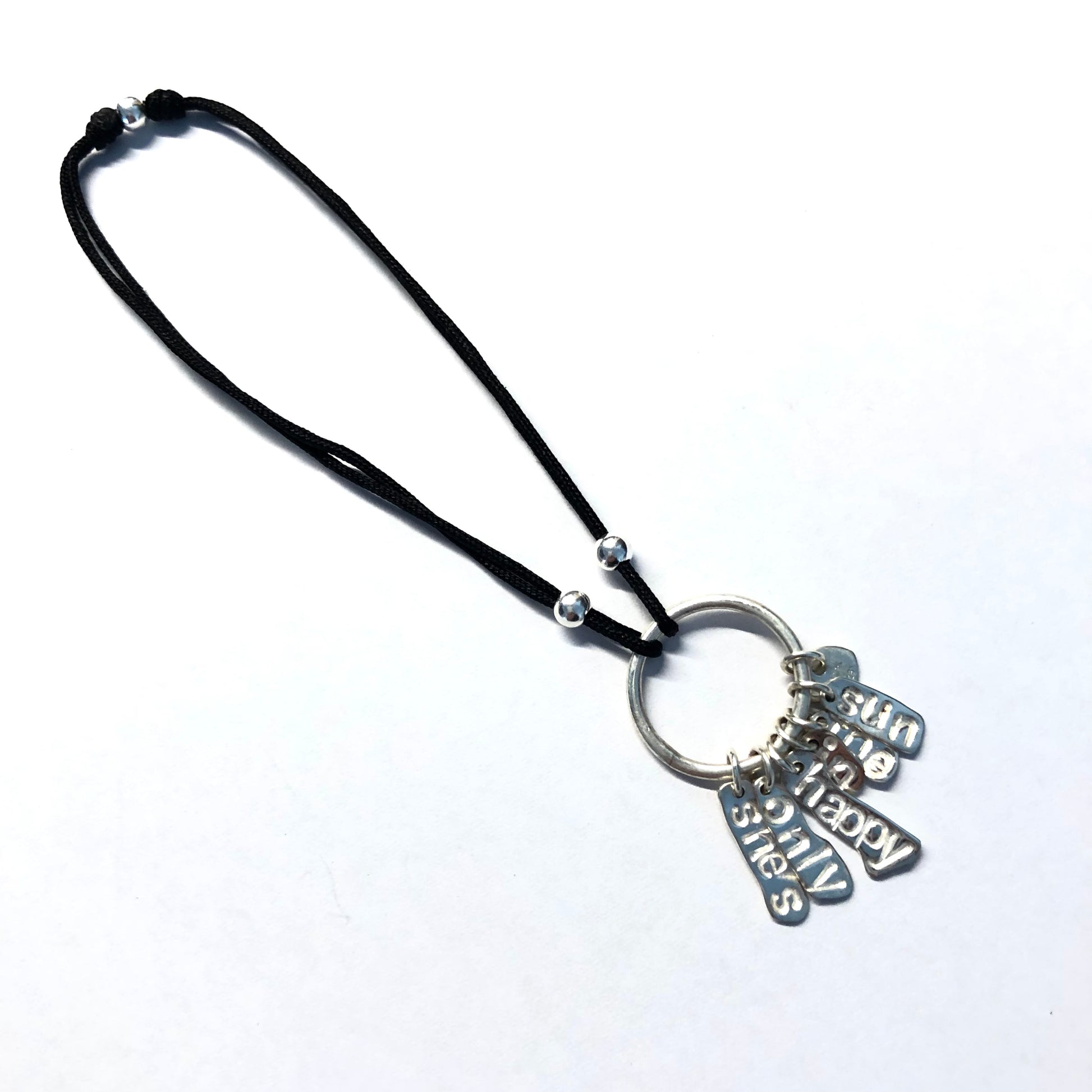 Ce bracelet unique associe simplicité et émotion. Chaque pampille en argent massif 925 est frappée à la main des mots qui composent le titre, rendant chaque pièce singulière et profondément personnelle.