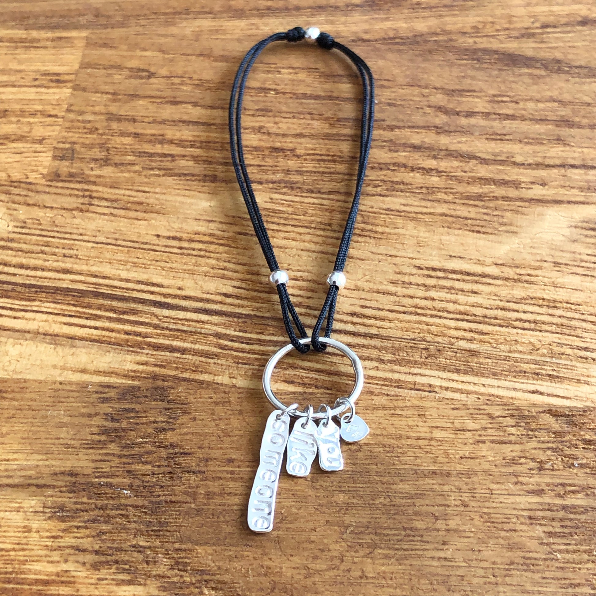 Ce bracelet unique associe simplicité et émotion. Chaque pampille en argent massif 925 est frappée à la main des mots qui composent le titre, rendant chaque pièce singulière et profondément personnelle.