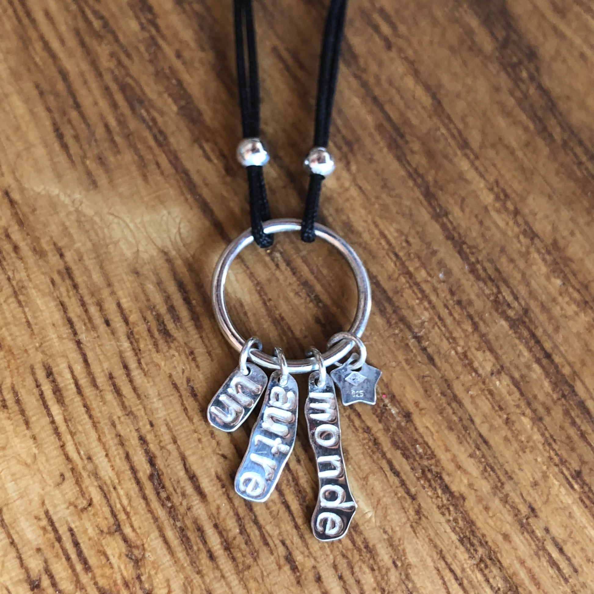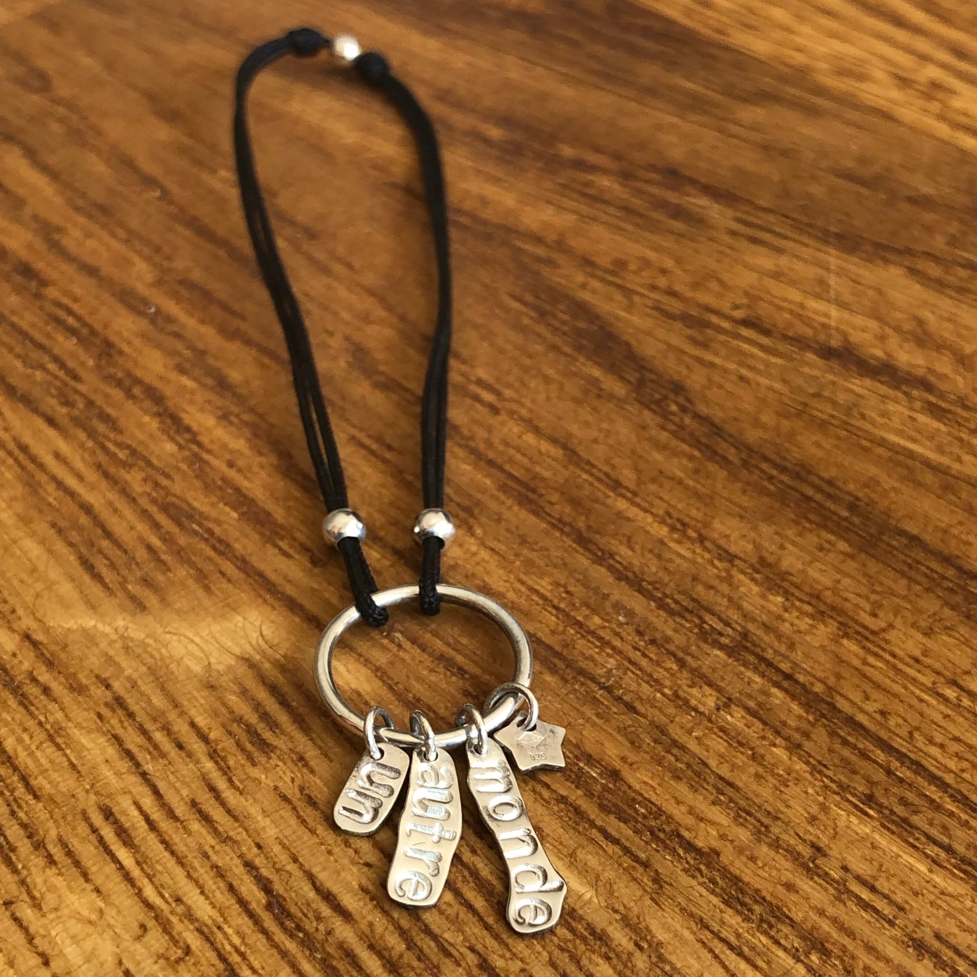 Inspiré de la chanson Girl on fire de Alicia Keys, ce bracelet unique associe simplicité et émotion. Chaque pampille en argent massif 925 est frappée à la main des mots qui composent le titre, rendant chaque pièce singulière et profondément personnelle.